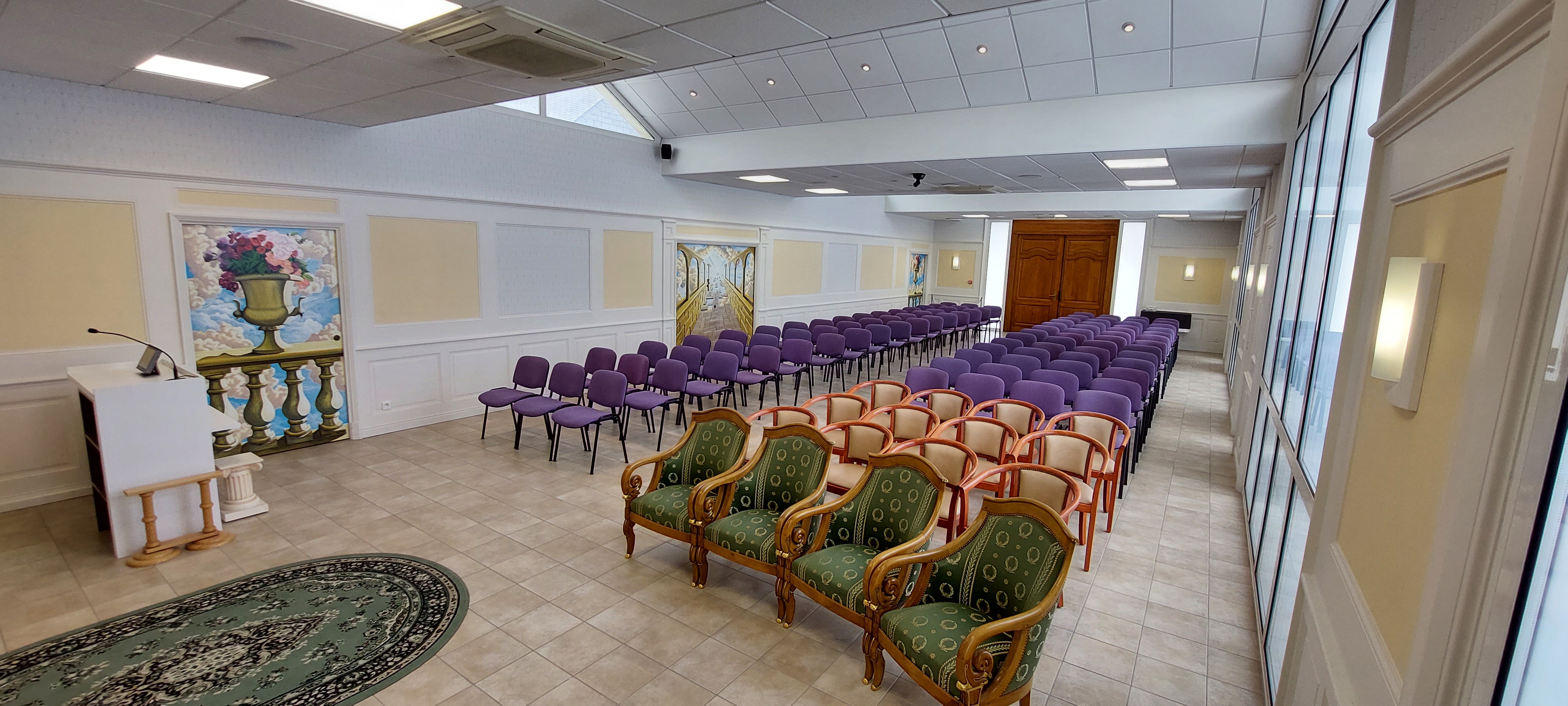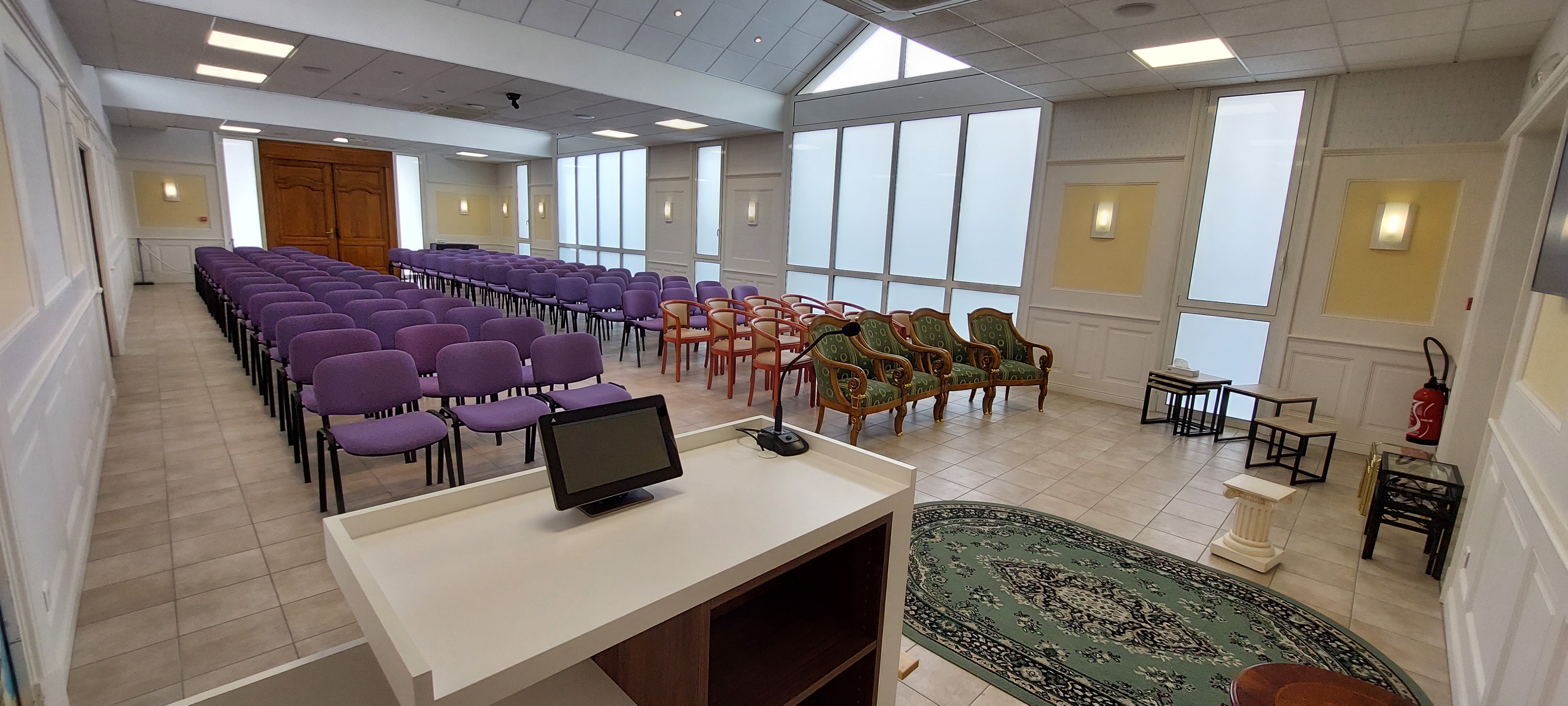 Nous sommes l'unique entreprise de pompes funèbres, aux alentours de Loudéac, à disposer d'une véritable salle de cérémonie, d'une capacité de 120 places assises.