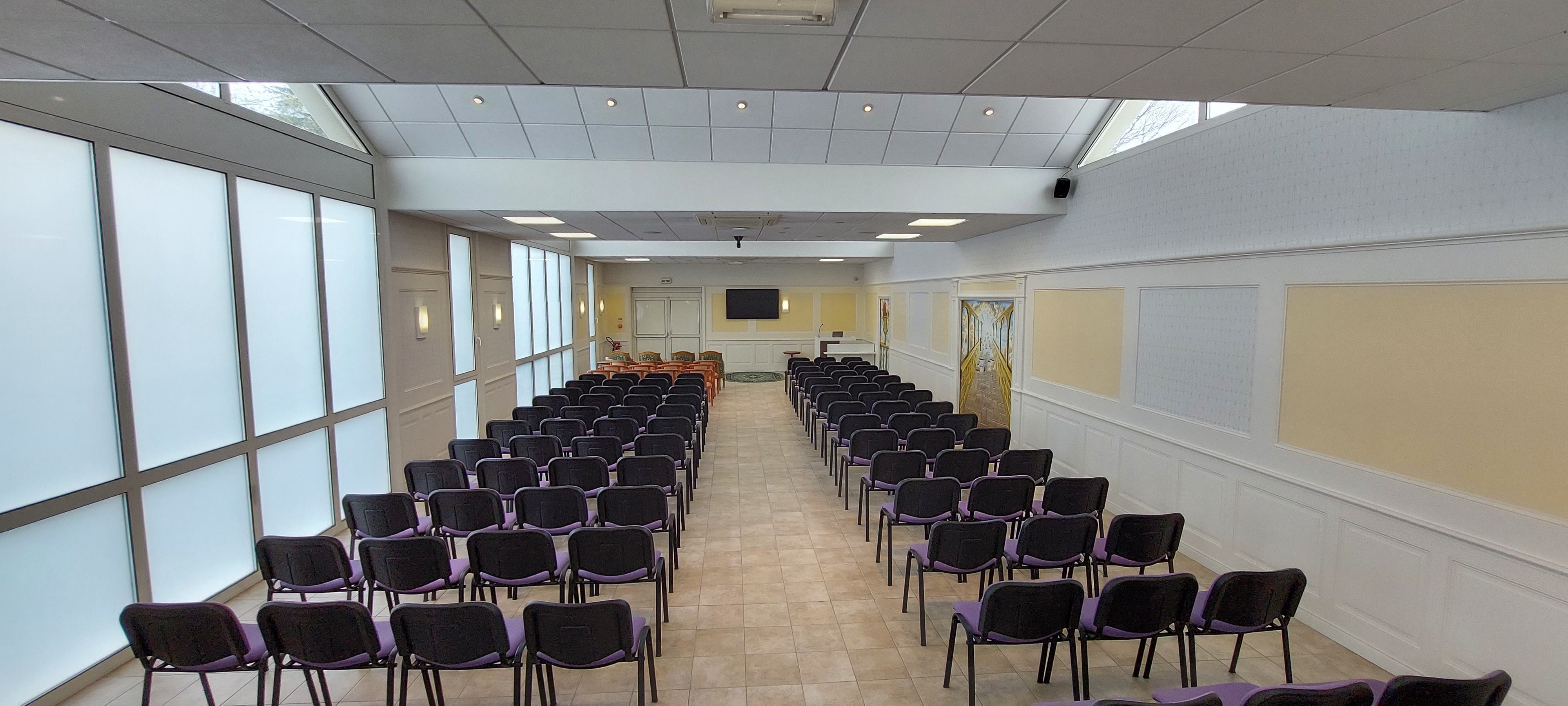 Salle spécialement dédiée aux hommages, elle permet d'honorer le départ d'un être cher dans des conditions optimales car elle dispose d'un système vidéo et audio de dernière génération. Un deuxième écran peut être mis à disposition à l'extérieur de la salle, sous le porche, ainsi qu'une sonorisation externe en cas de grande affluence.