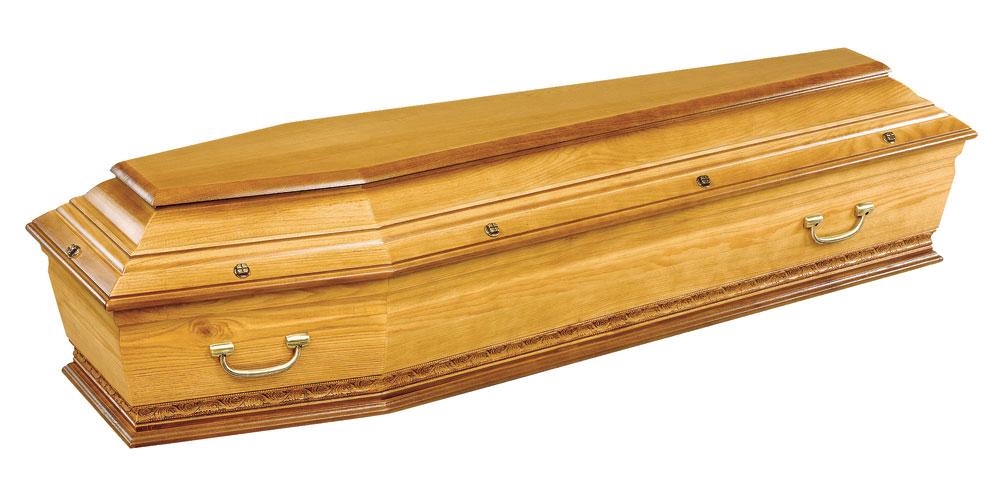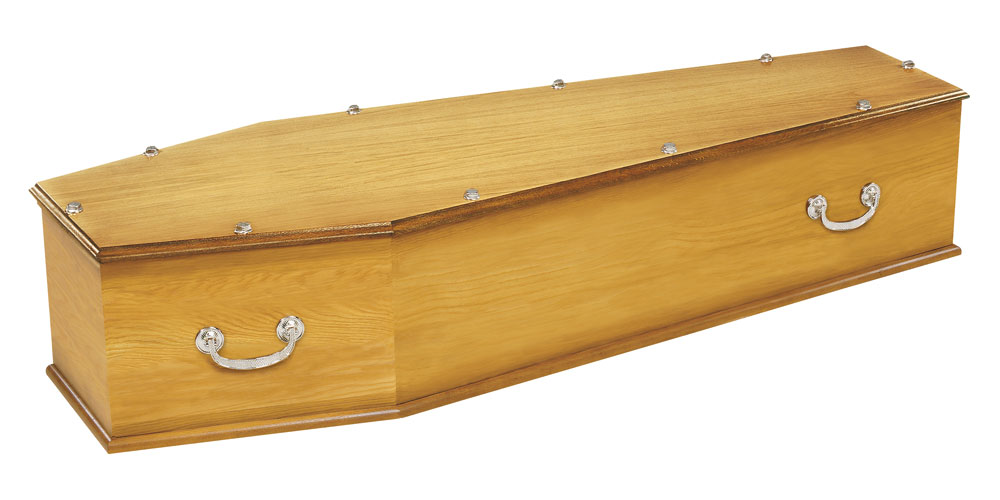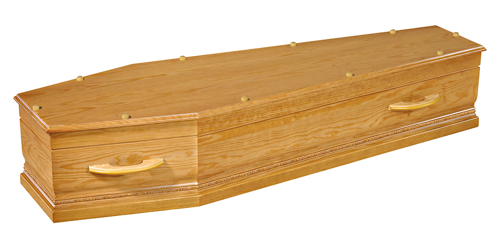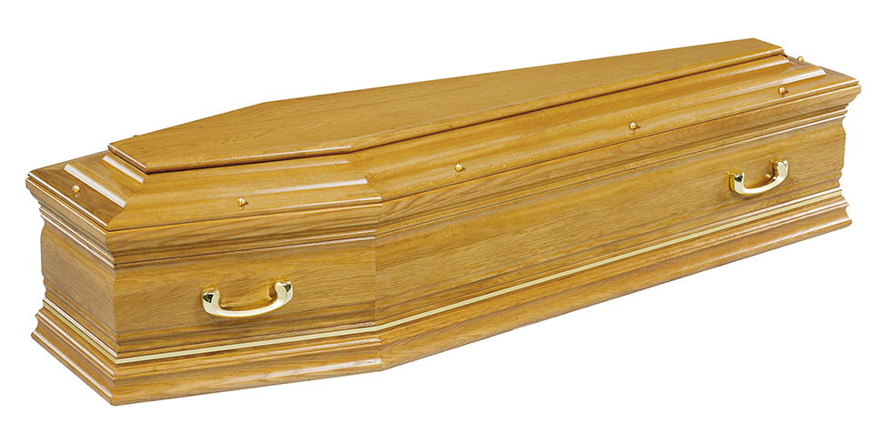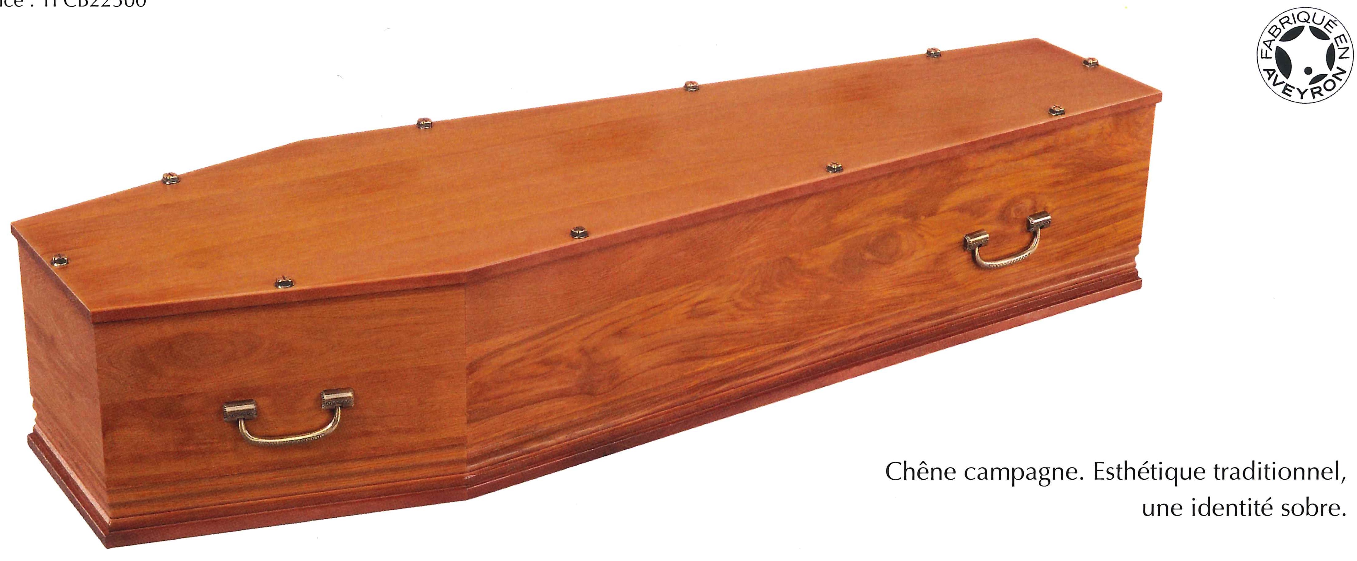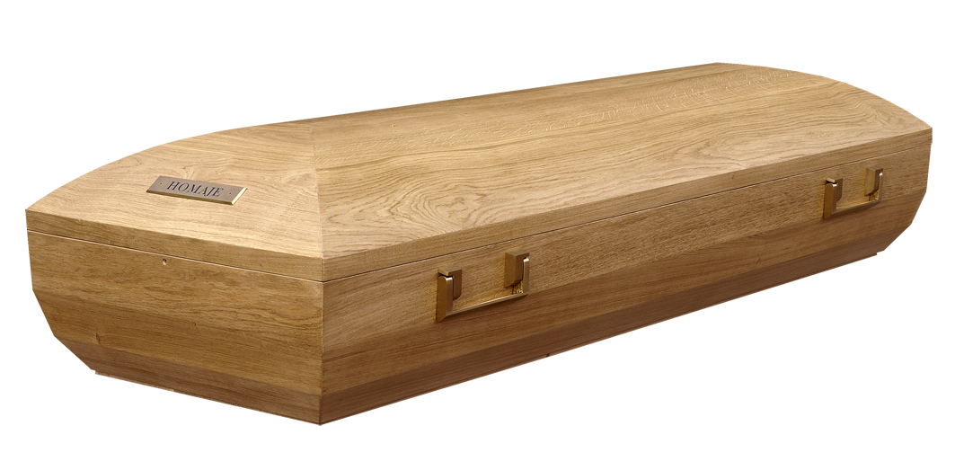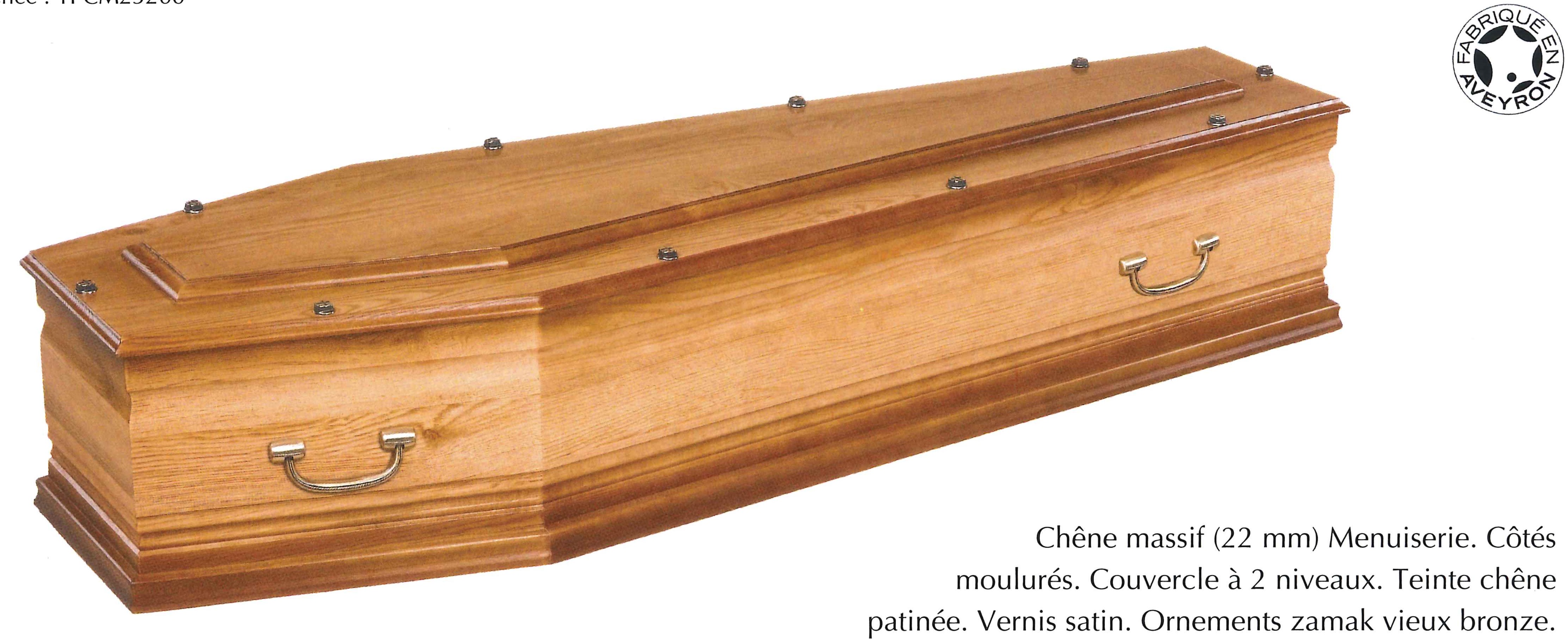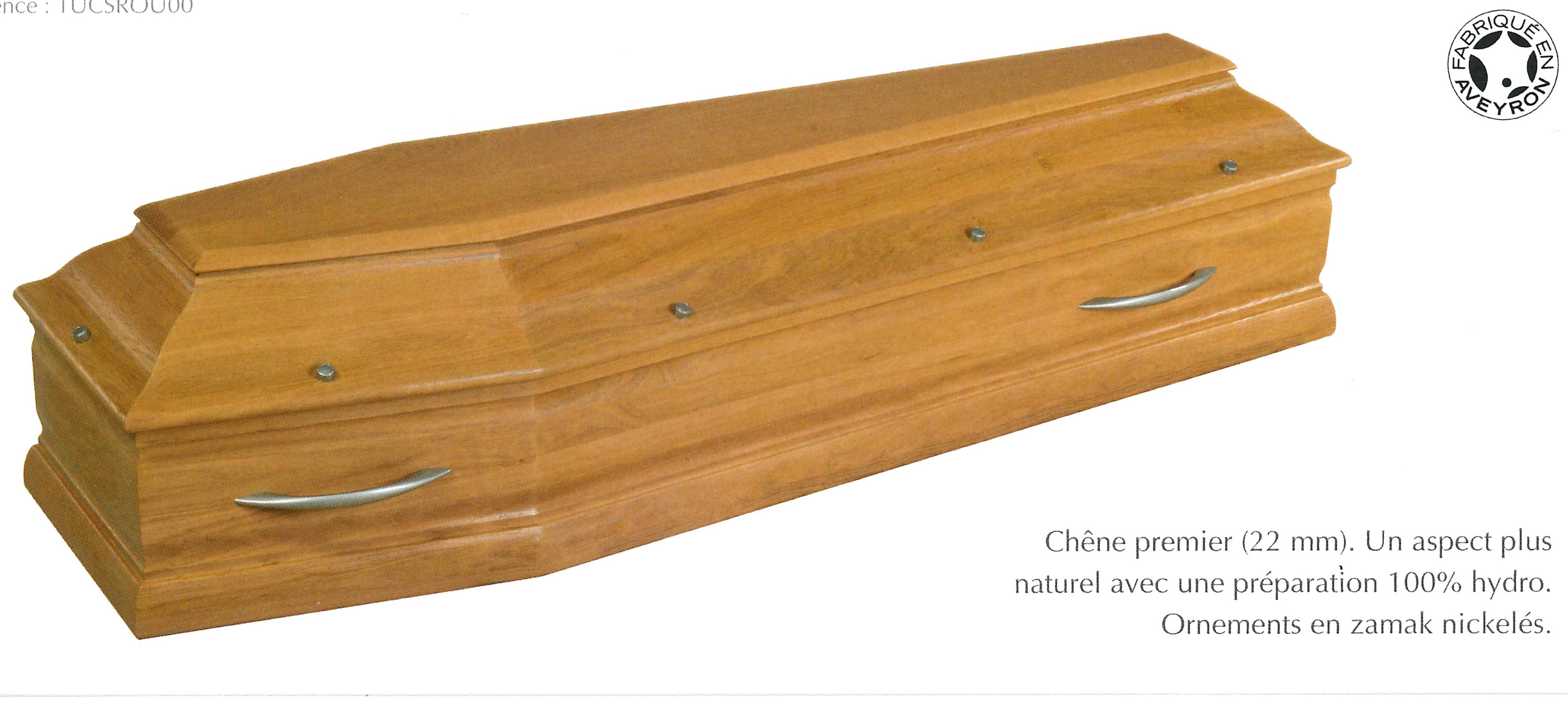 LE ROUSSILLON / cercueil INHUMATION de type TOMBEAU / chêne premier massif 22 mm / teinte chêne clair et vernis satin