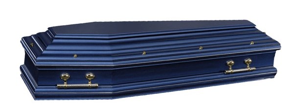 L'AZUR / cercueil INHUMATION de type TOMBEAU / Chêne premier massif 22 mm / laqué bleu / Disponible en noir = L'OPALE
