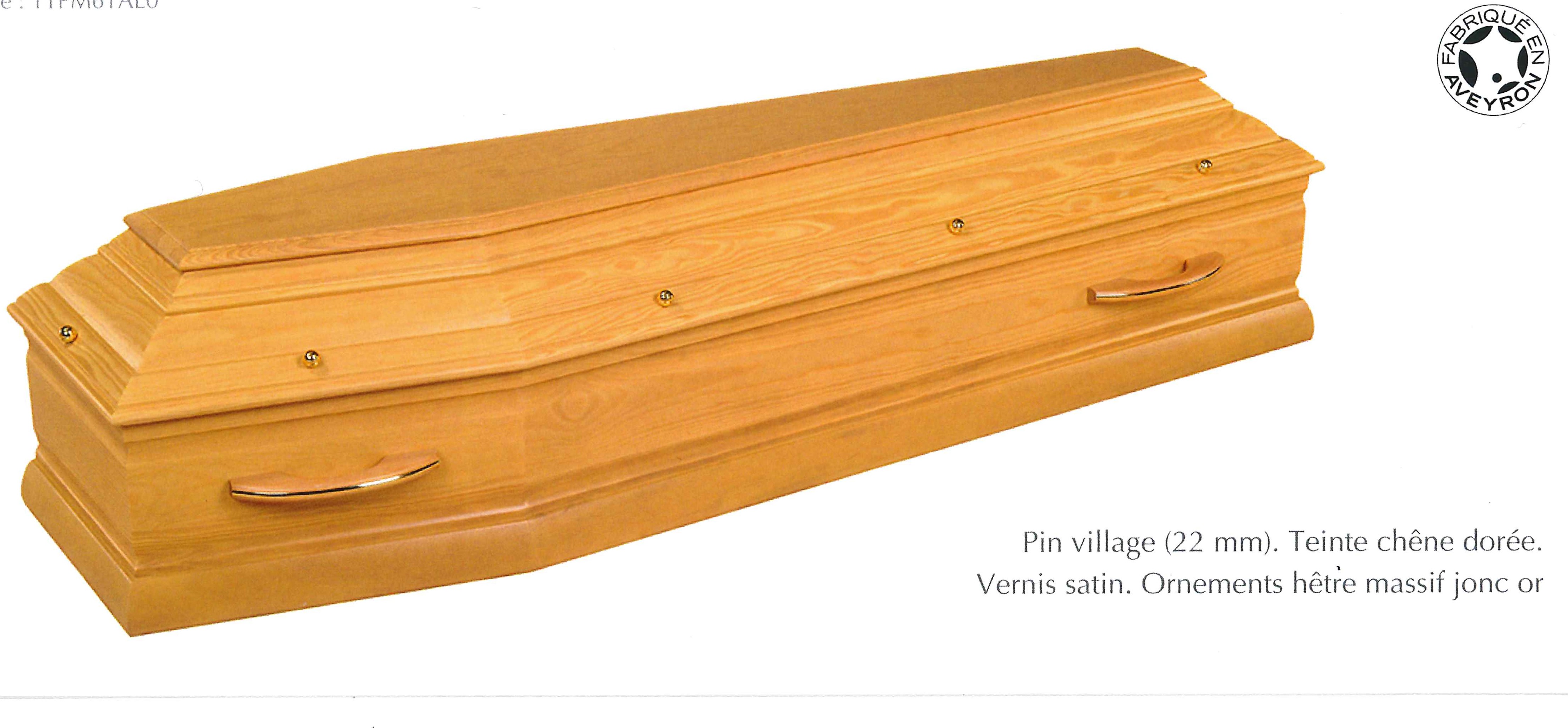 LE TALENSAC / cercueil de CREMATION de type TOMBEAU / pin 22 mm, teinte chêne doré, vernis satin