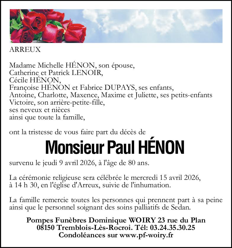 Avis de décès de Monsieur Paul HÉNON