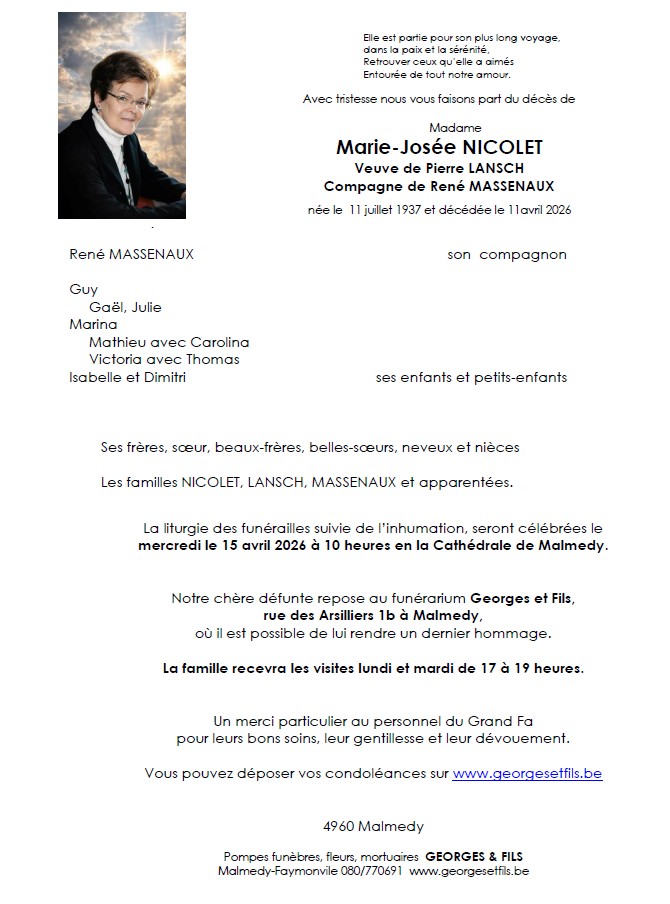 Cimetière de Malmedy el miércoles 15 abril a 11horas 30