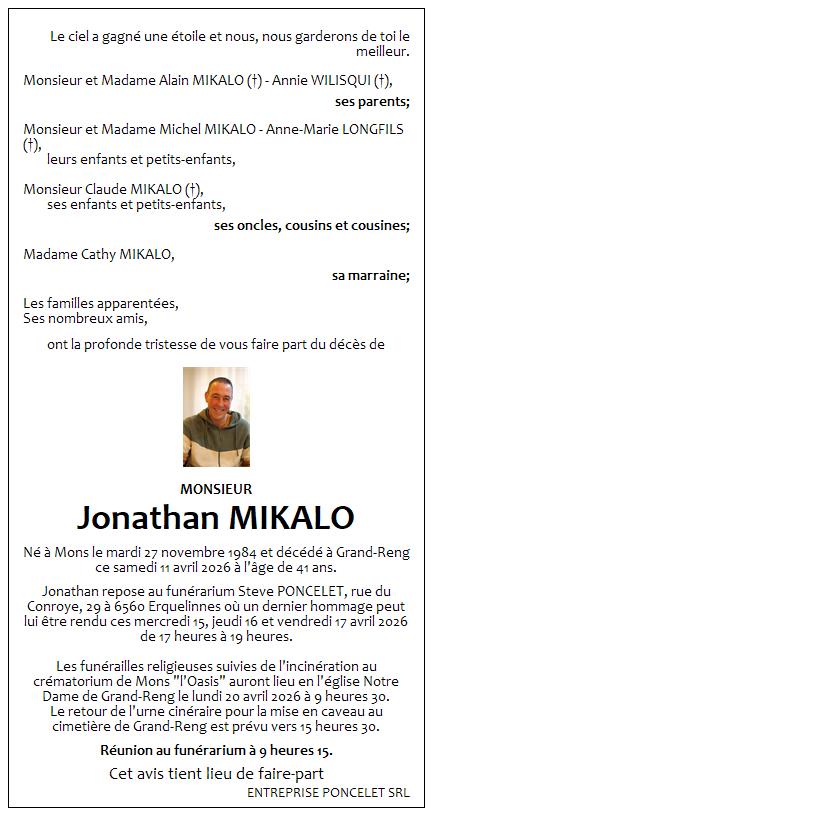 Died in Grand-Reng (6560, Belgium) on 11 April 2026 at the age of 41 years