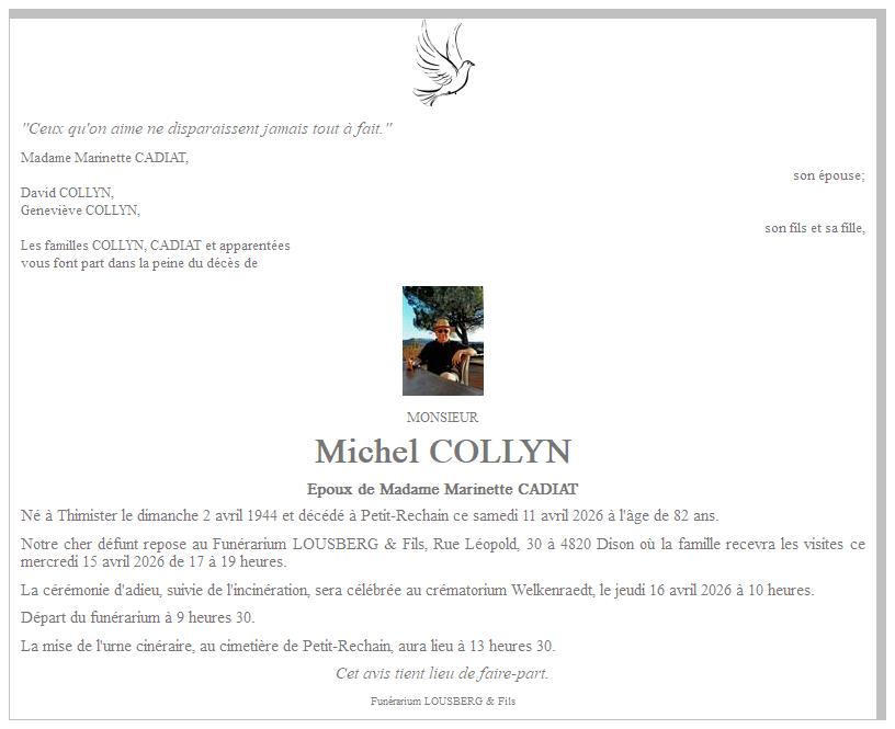 cimetière de Petit-Rechain le jeudi 16 avril à 13 heures 30