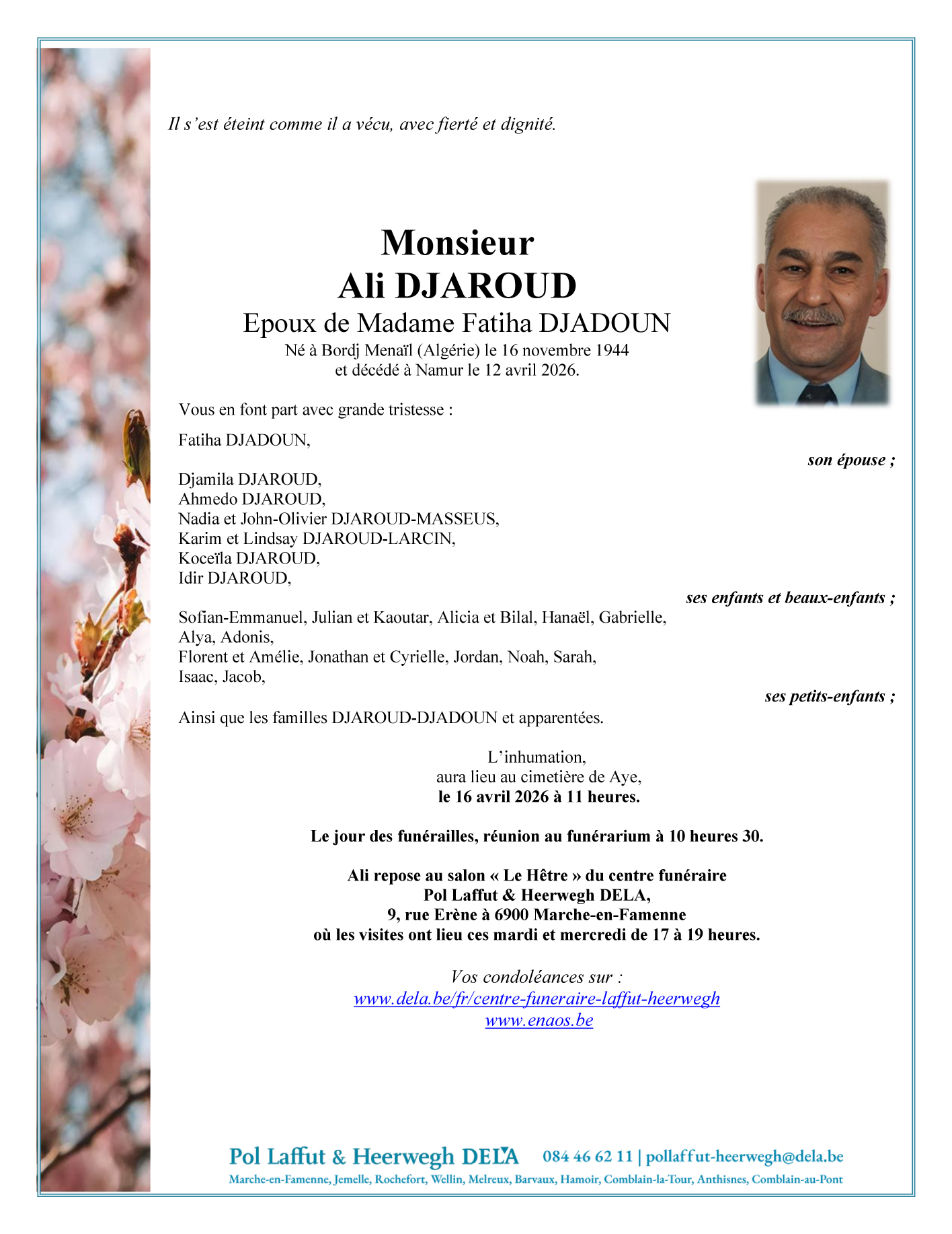 Avis de décès de Monsieur Ali DJAROUD