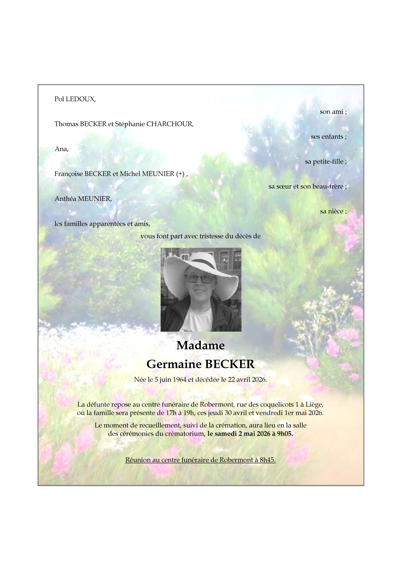 crématorium de Robermont de Robermont le samedi 2 mai à 9 heures 05