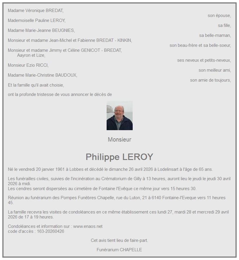 Avis de décès de Monsieur Philippe LEROY