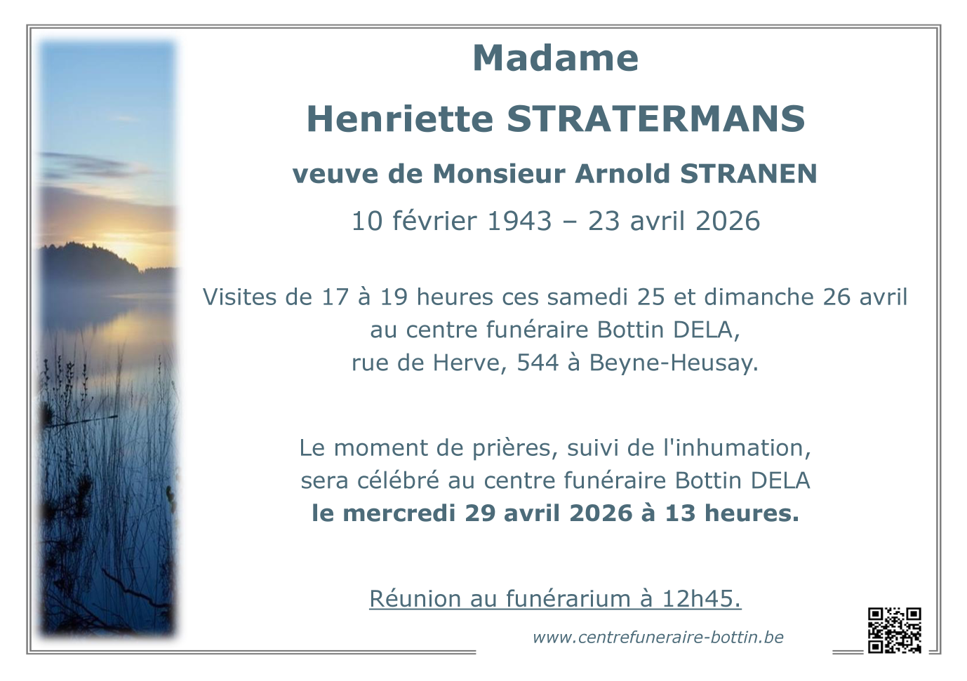 centre funéraire Bottin DELA de Beyne-Heusay le mercredi 29 avril à 13 heures