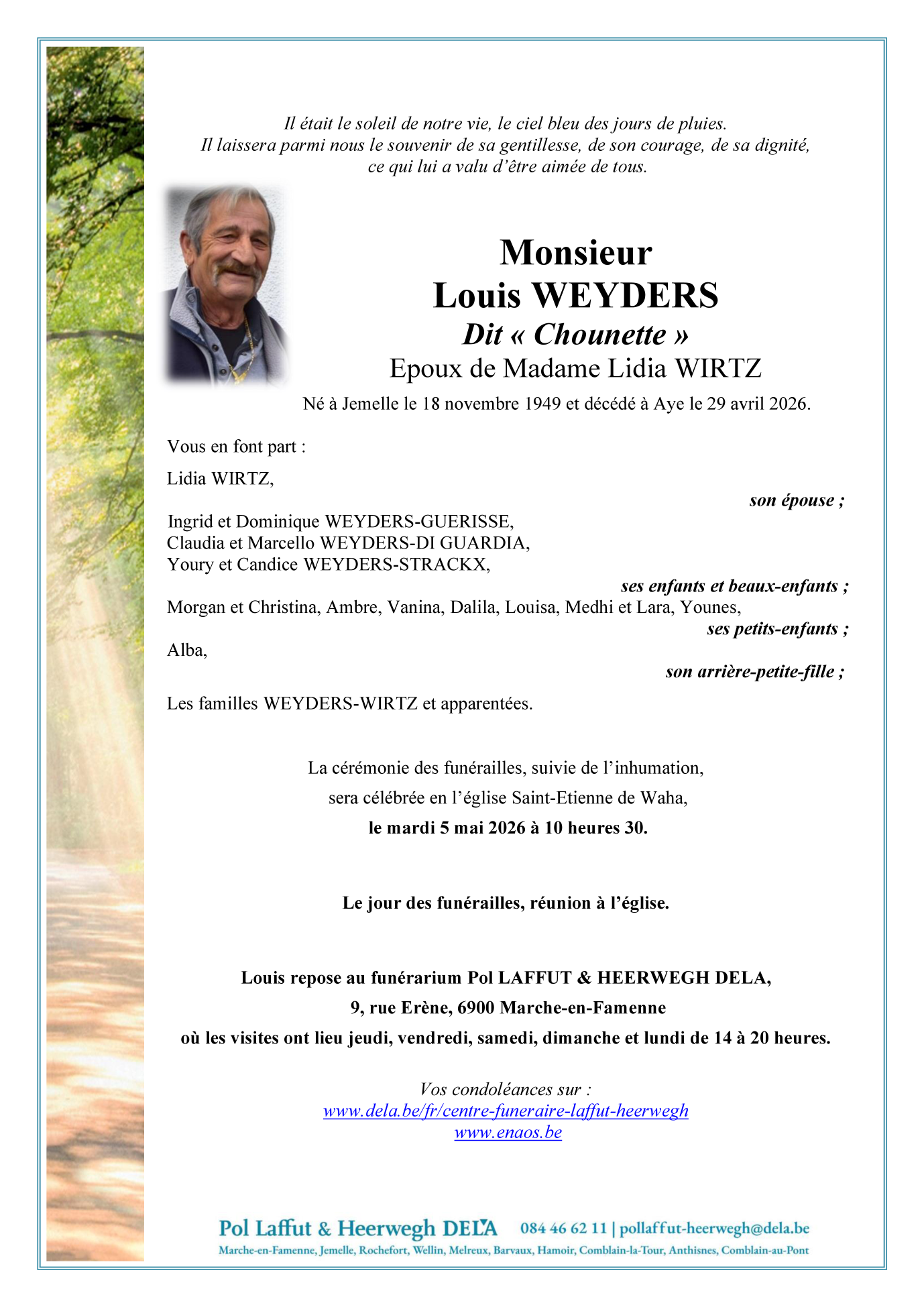 cimetière de Waha le mardi 5 mai à 11 heures 30