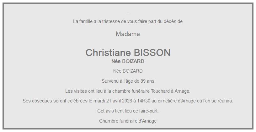 Avis de décès de Madame Christiane BISSON née BOIZARD