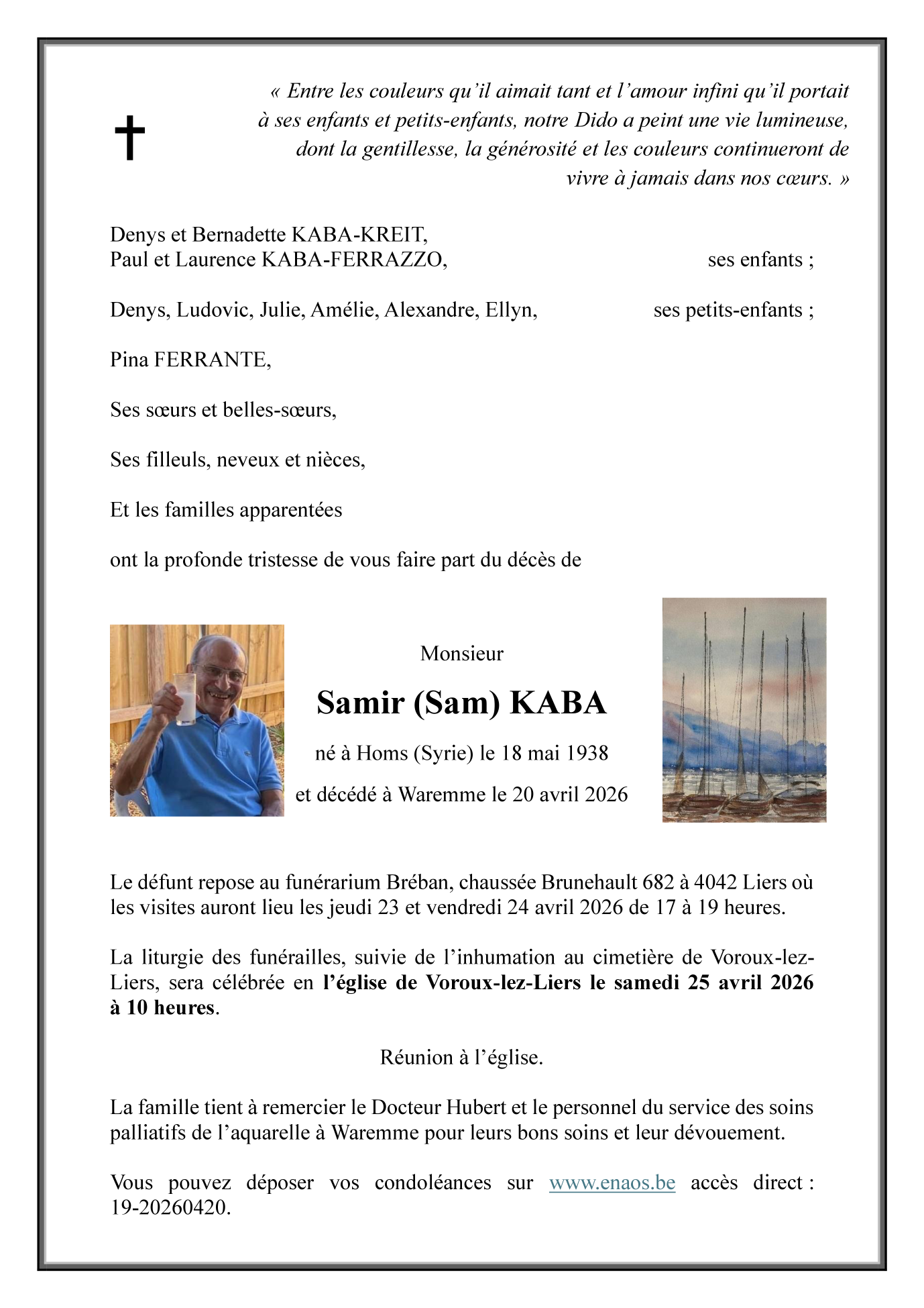 Avis de décès de Monsieur Samir (Sam) KABA