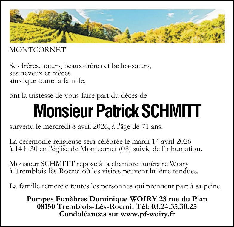 Avis de décès de Monsieur Patrick SCHMITT