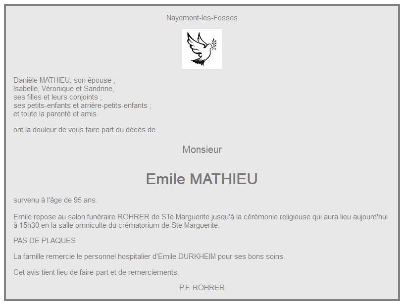Avis de décès de Monsieur Emile MATHIEU