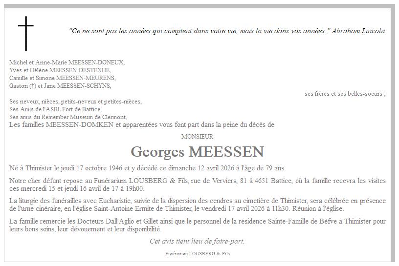 cimetière de Thimister le vendredi 17 avril à 13 heures