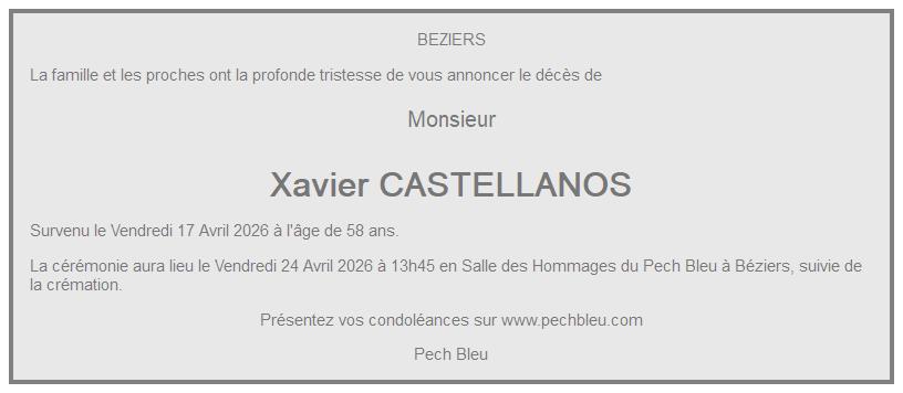 Avis de décès de Monsieur Xavier CASTELLANOS