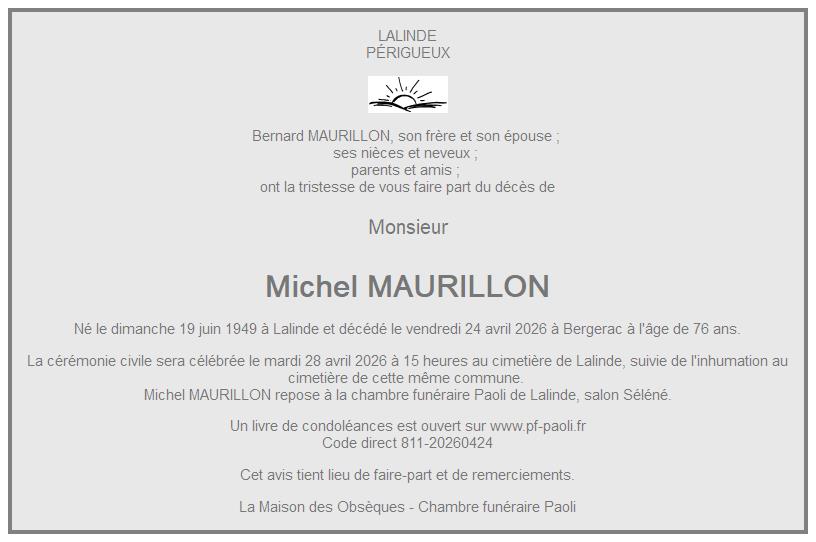 Avis de décès de Monsieur Michel MAURILLON