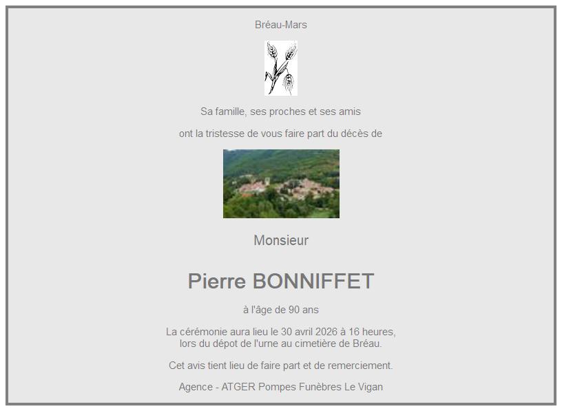 Avis de décès de Monsieur Pierre BONNIFFET