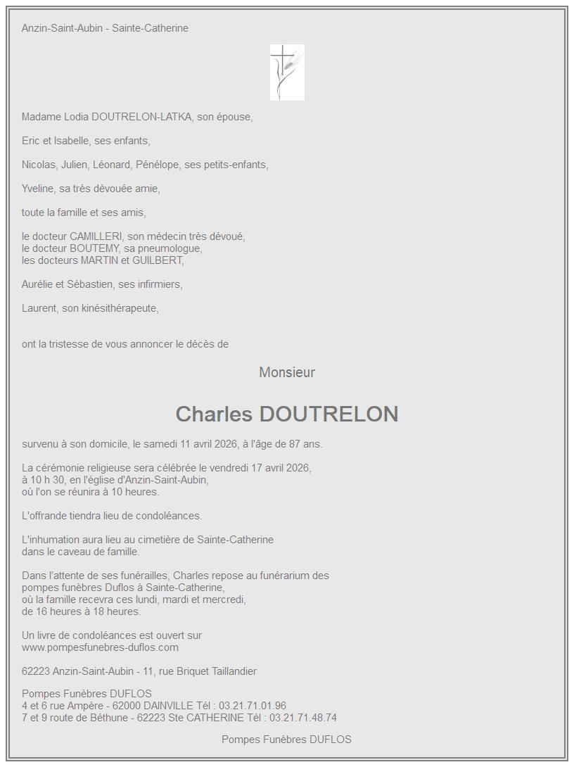 Avis de décès de Monsieur Charles DOUTRELON