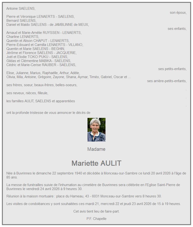 cimetière de Buvrinnes demain, vendredi 24 avril à 10 heures 30