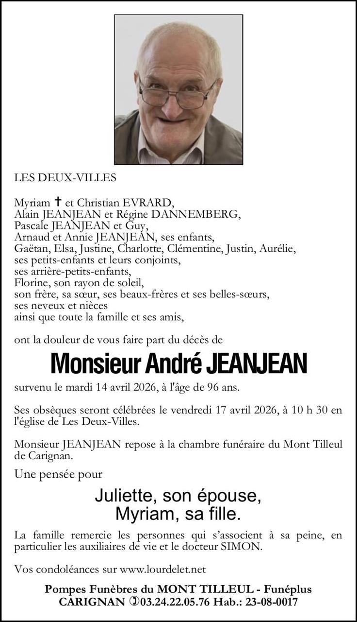 Décédé à Les Deux-Villes (08110, France) le mardi 14 avril 2026 à l'âge de 96 ans