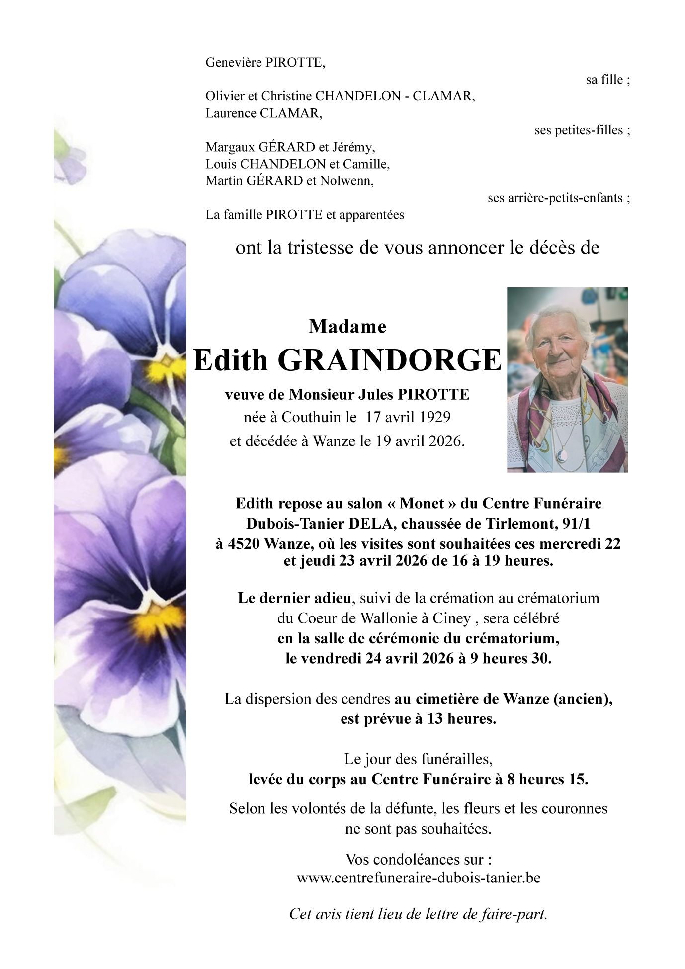 cimetière de Wanze demain, vendredi 24 avril à 13 heures