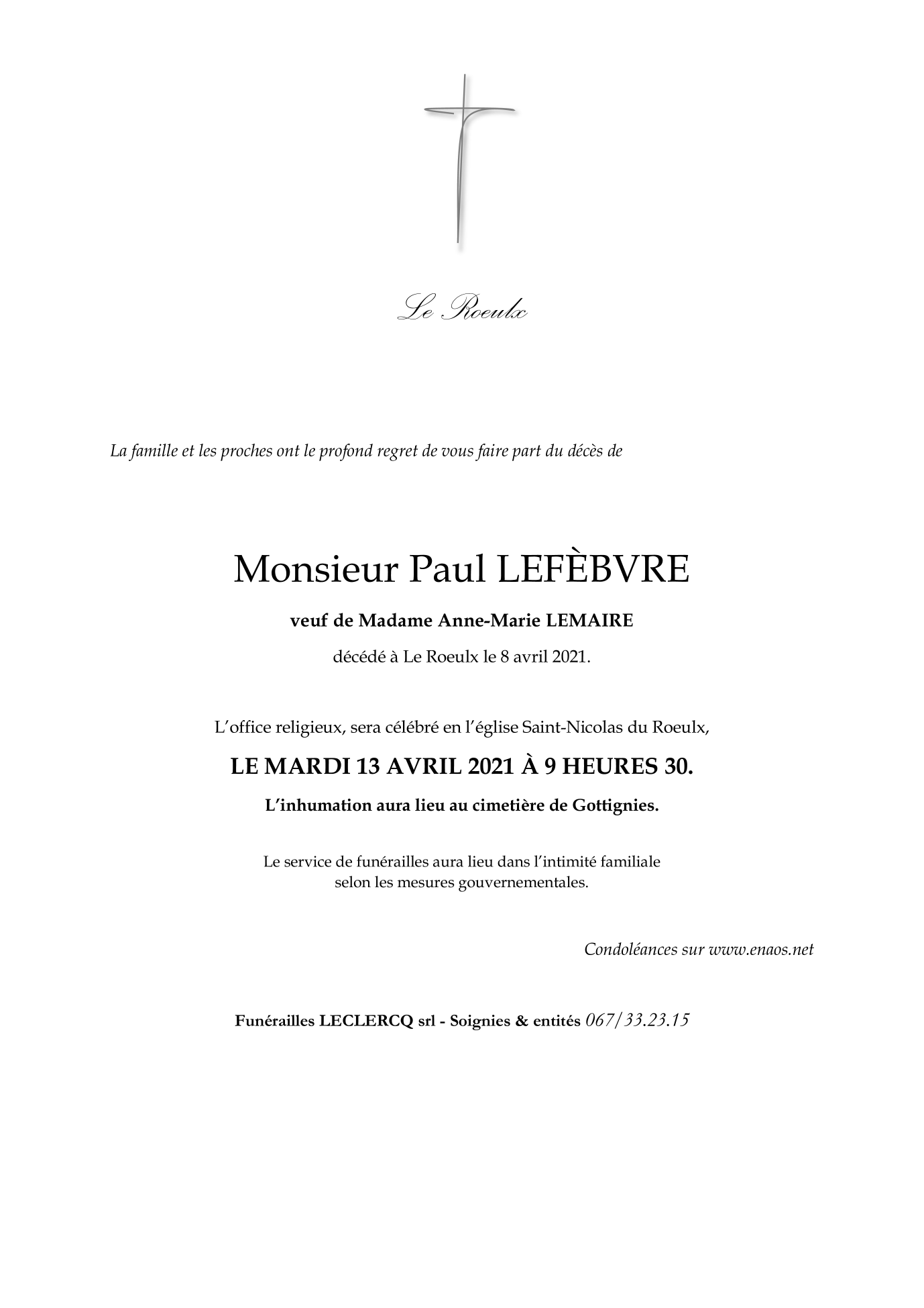 Monsieur Paul LEFÈBVRE