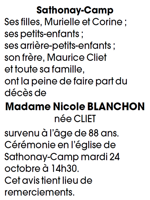 Madame Nicole BLANCHON née CLIET