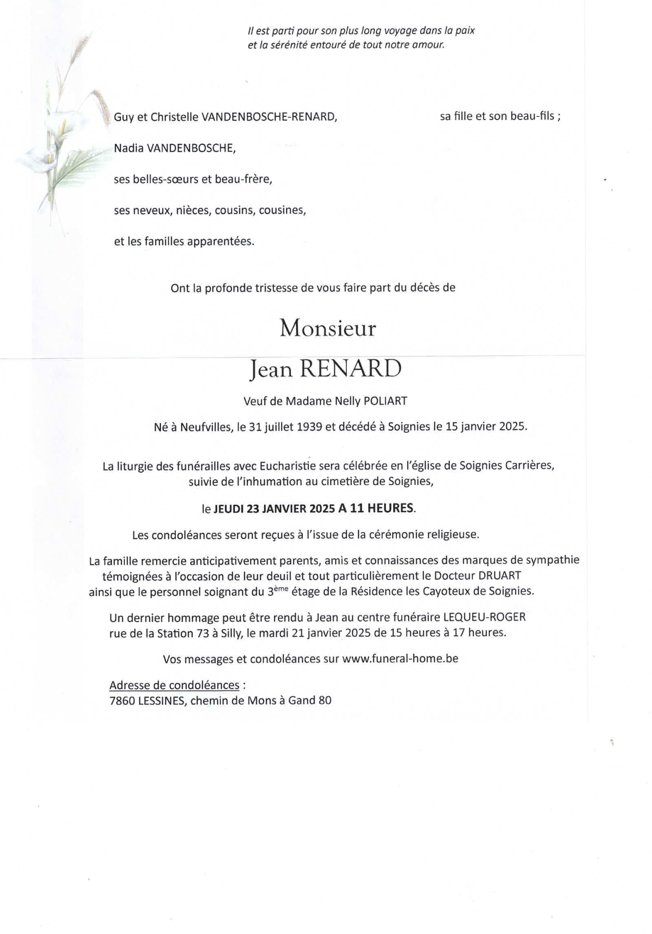 Décédé à Soignies (7060, Belgique) le mercredi 15 janvier 2025 à l'âge de 85 ans