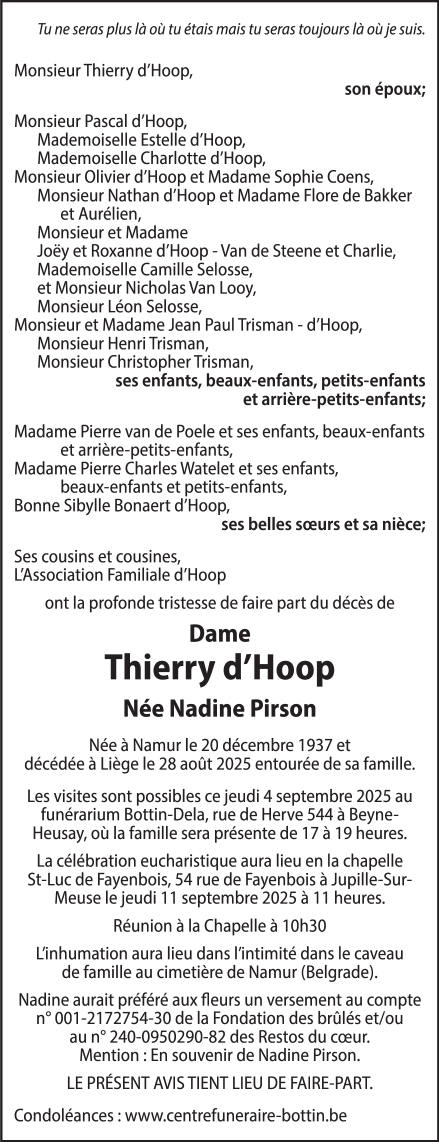 Epouse de Monsieur Thierry d'HOOP