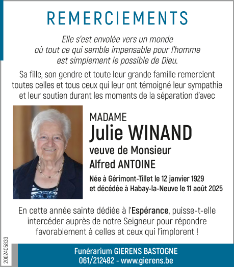 Overleden te Habay (6720, België) op maandag 11 augustus 2025 op 96-jarige leeftijd