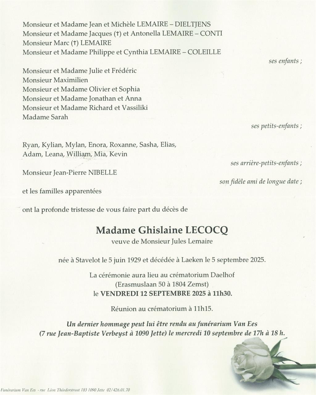 Décédée à Bruxelles (Laeken) (1020, Belgique) le vendredi 5 septembre 2025 à l'âge de 96 ans