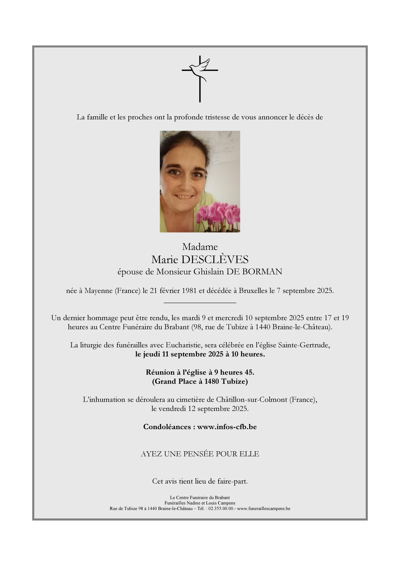 Décédée à Bruxelles (1000, Belgique) le dimanche 7 septembre 2025 à l'âge de 44 ans