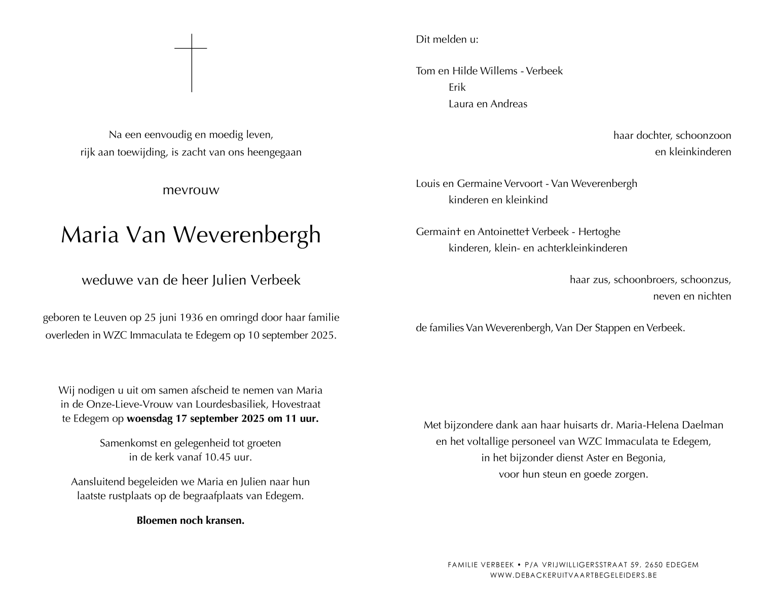 Décédée à Edegem (2650, Belgique) le mercredi 10 septembre 2025 à l'âge de 89 ans