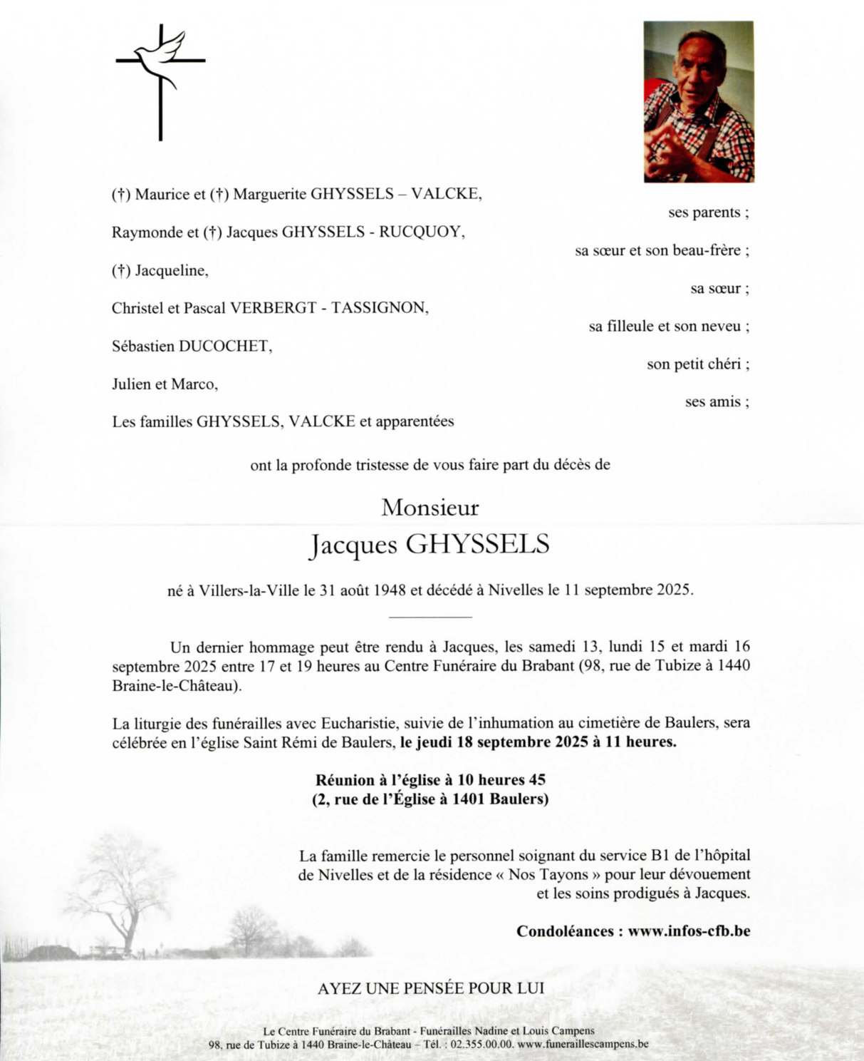 Décédé à Nivelles (1400, Belgique) le jeudi 11 septembre 2025 à l'âge de 77 ans