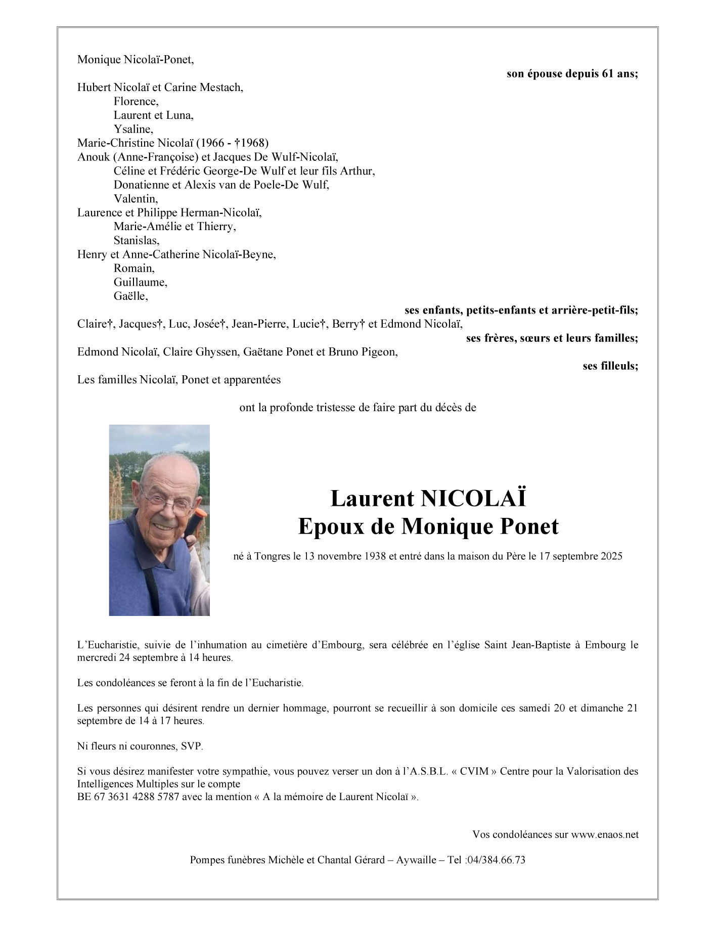 Décédé à Embourg (4053, Belgique) le mercredi 17 septembre 2025 à l'âge de 86 ans