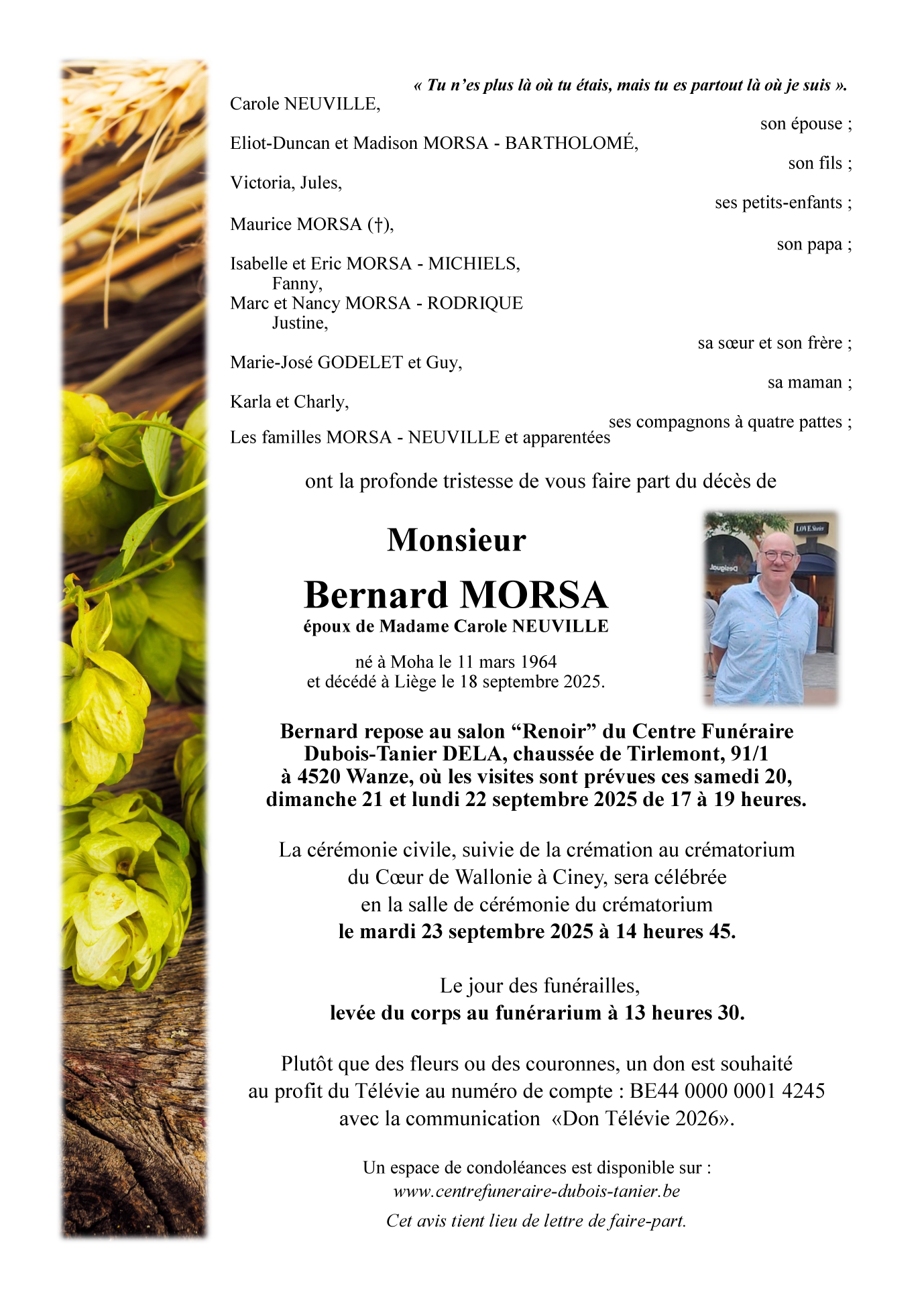 Décédé à Liège (4000, Belgique) le jeudi 18 septembre 2025 à l'âge de 61 ans