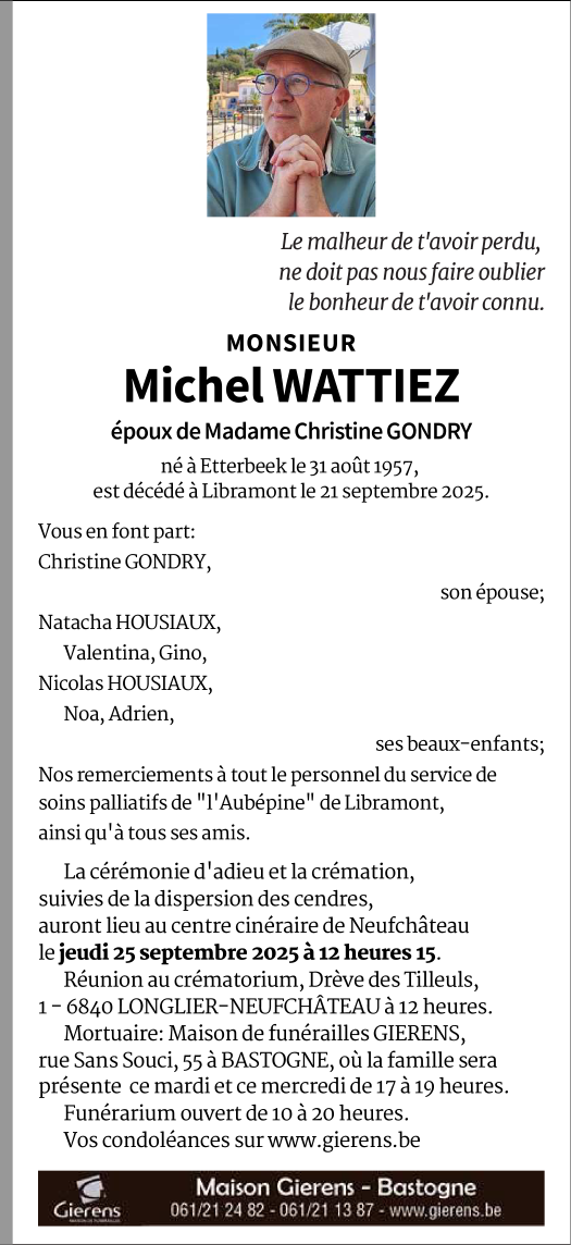 Décédé à Libramont-Chevigny (6800, Belgique) le dimanche 21 septembre 2025 à l'âge de 68 ans