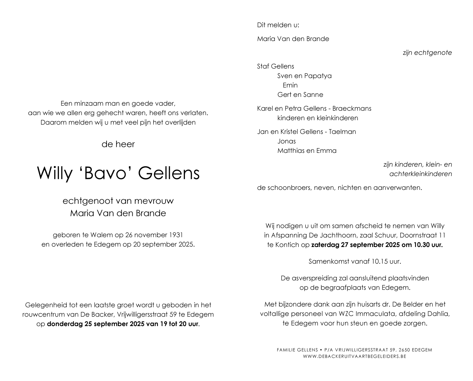 Décédé à Edegem (2650, Belgique) le samedi 20 septembre 2025 à l'âge de 93 ans
