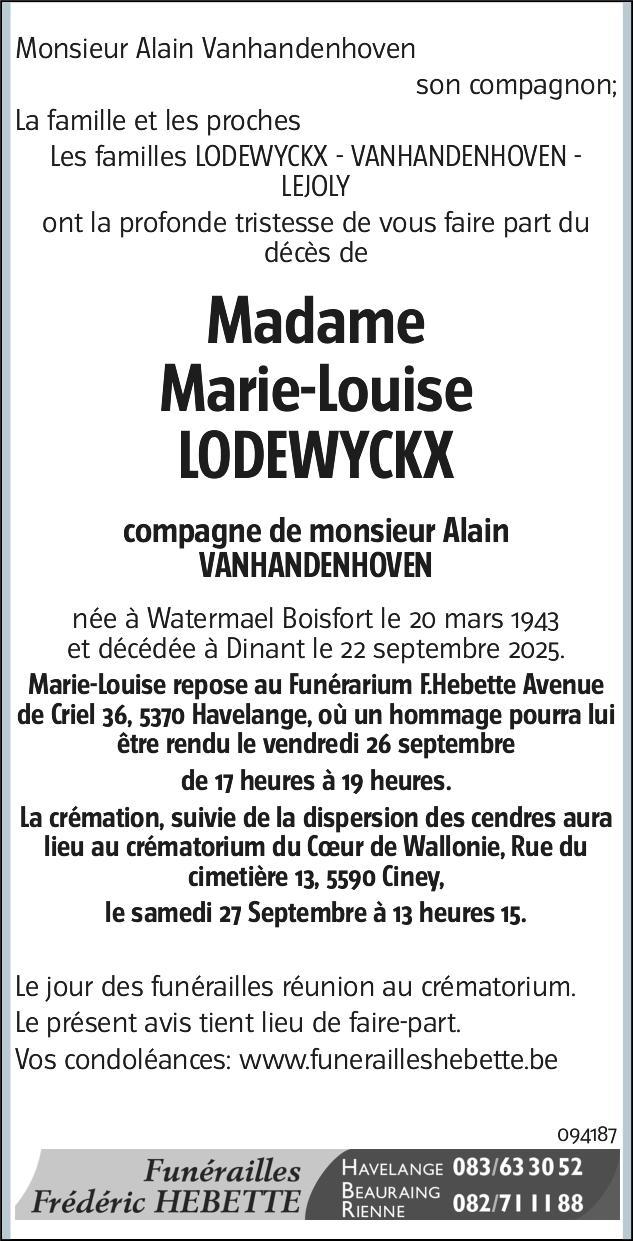Madame Marie-Louise LODEWYCKX