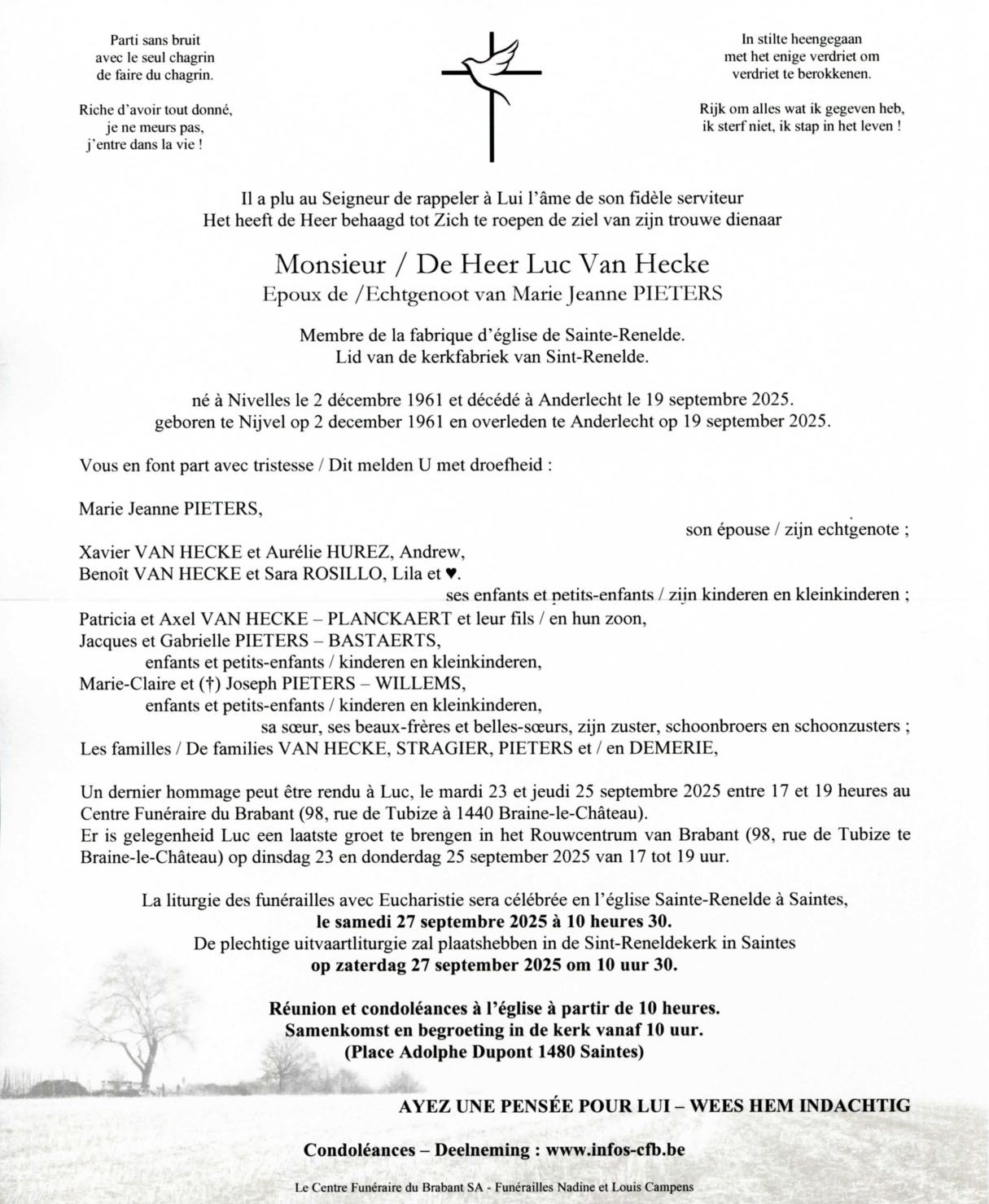Décédé à Anderlecht (1070, Belgique) le vendredi 19 septembre 2025 à l'âge de 63 ans