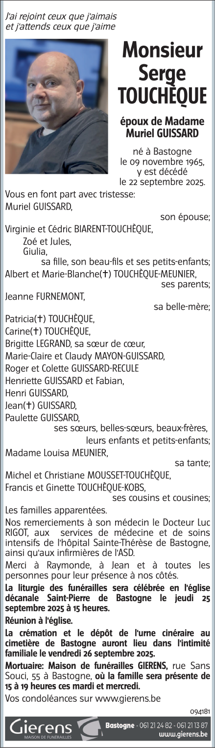 Décédé à Bastogne (6600, Belgique) le lundi 22 septembre 2025 à l'âge de 59 ans