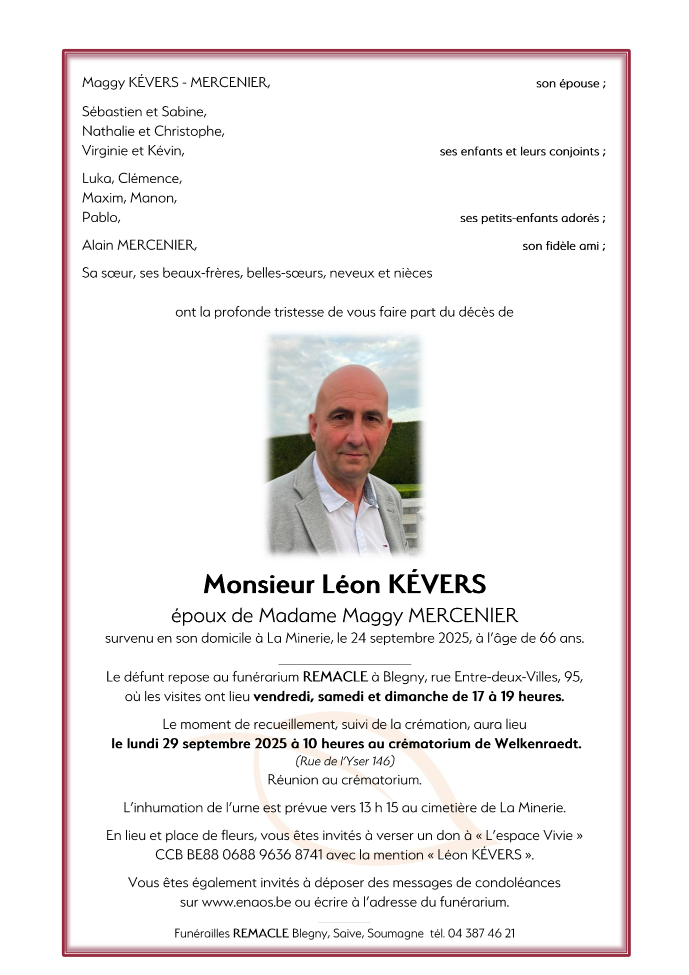 Décédé à La Minerie (4890, Belgique) le mercredi 24 septembre 2025 à l'âge de 66 ans
