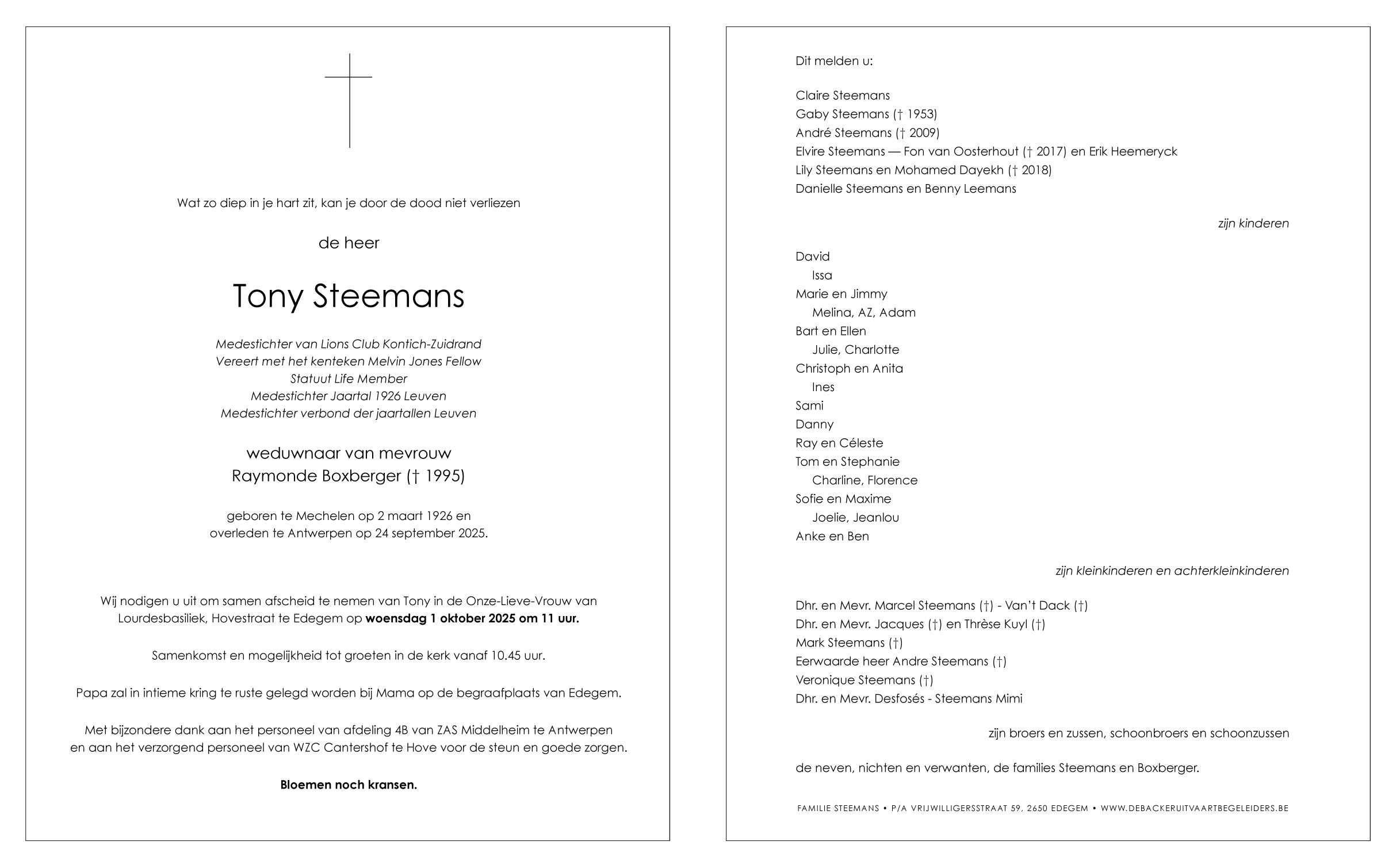 Décédée à Antwerpen (2020, Belgique) le mercredi 24 septembre 2025 à l'âge de 99 ans