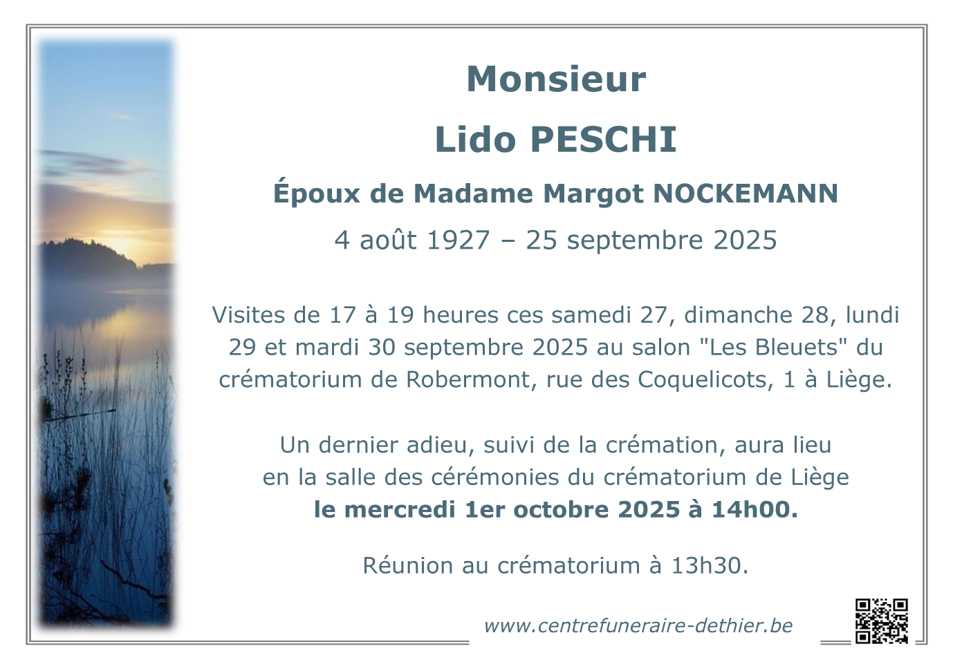 Décédé à Seraing (4100, Belgique) le jeudi 25 septembre 2025 à l'âge de 98 ans