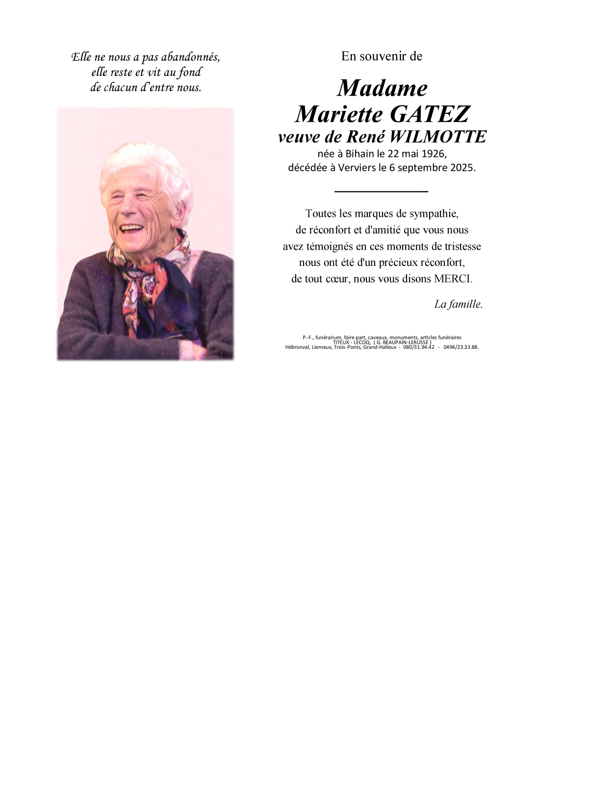 Veuf de Monsieur René WILMOTTE