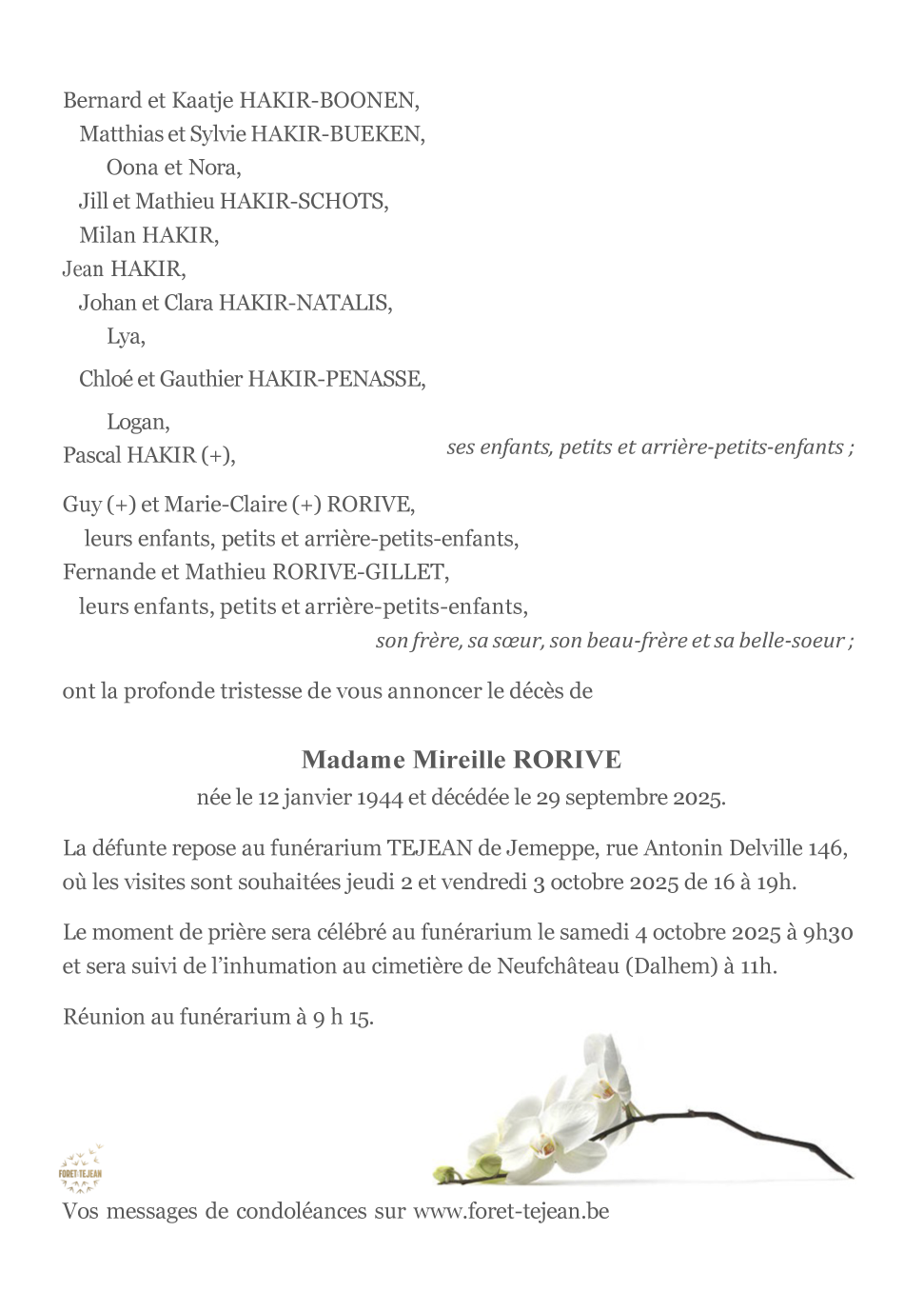 Décédée à Waremme (4300, Belgique) le lundi 29 septembre 2025 à l'âge de 81 ans