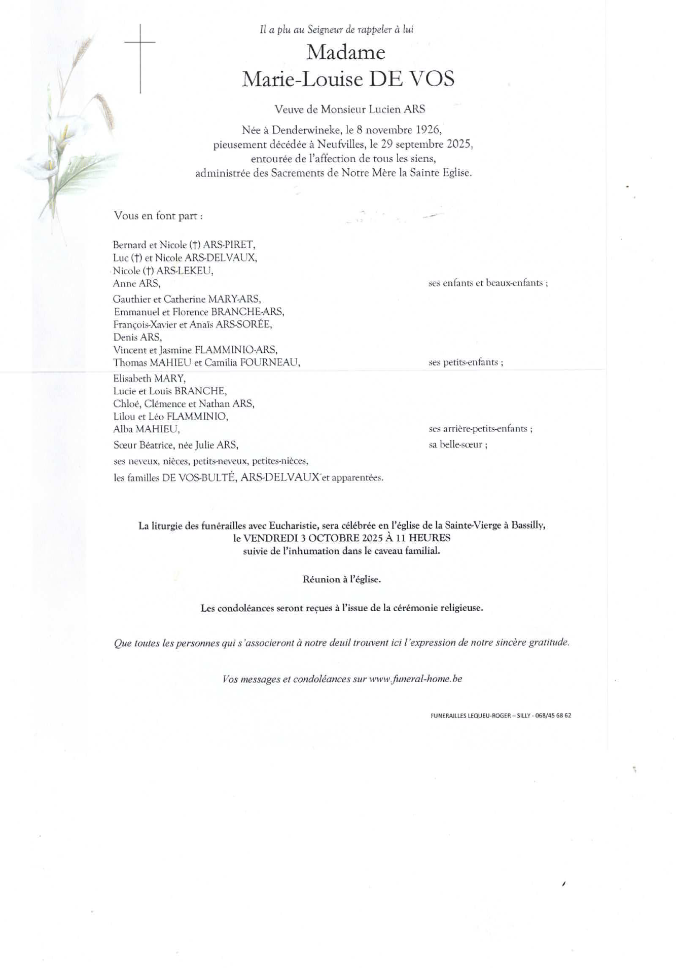 Veuve de Monsieur Lucien ARS