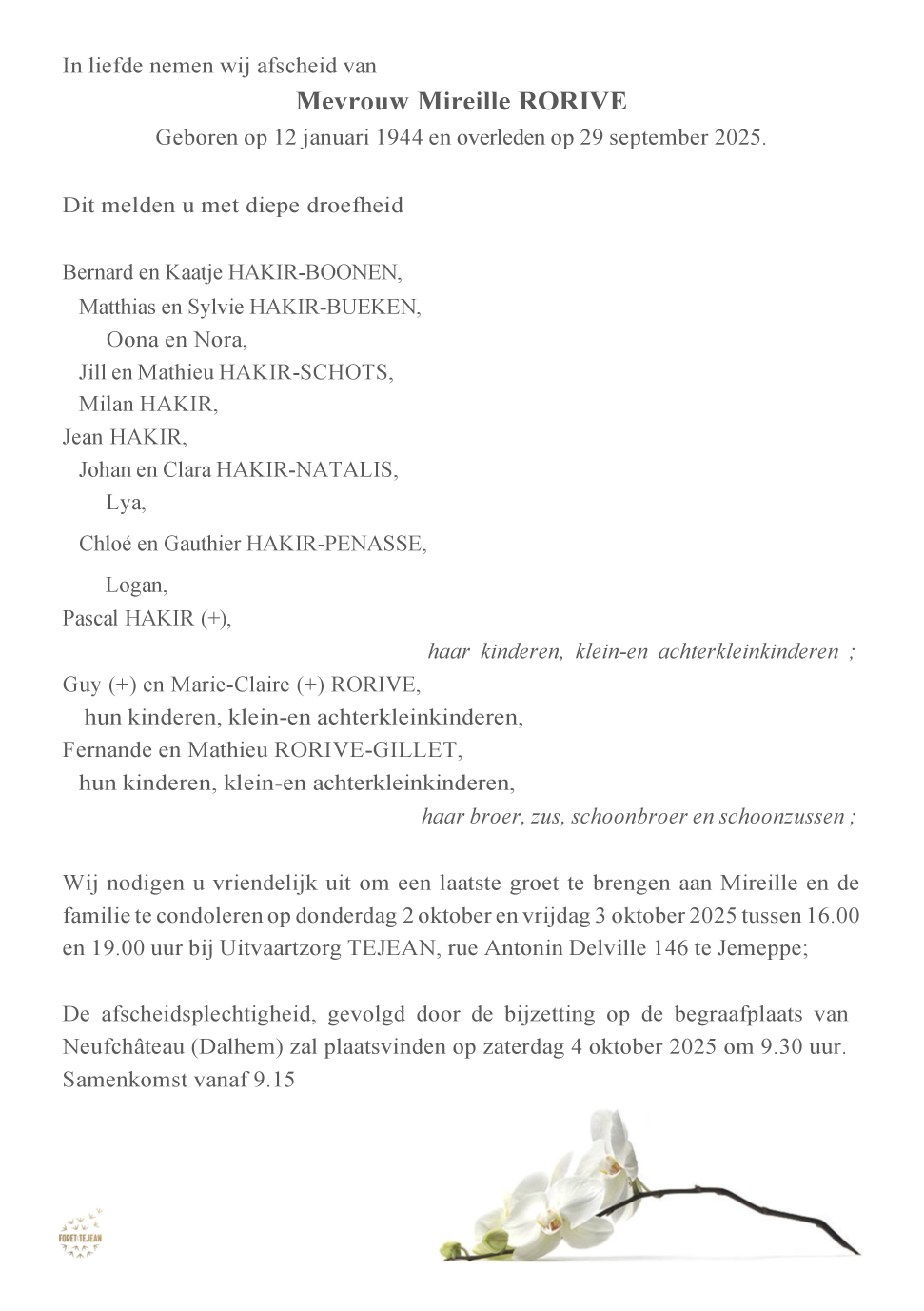 Décédée à Waremme (4300, Belgique) le lundi 29 septembre 2025 à l'âge de 81 ans