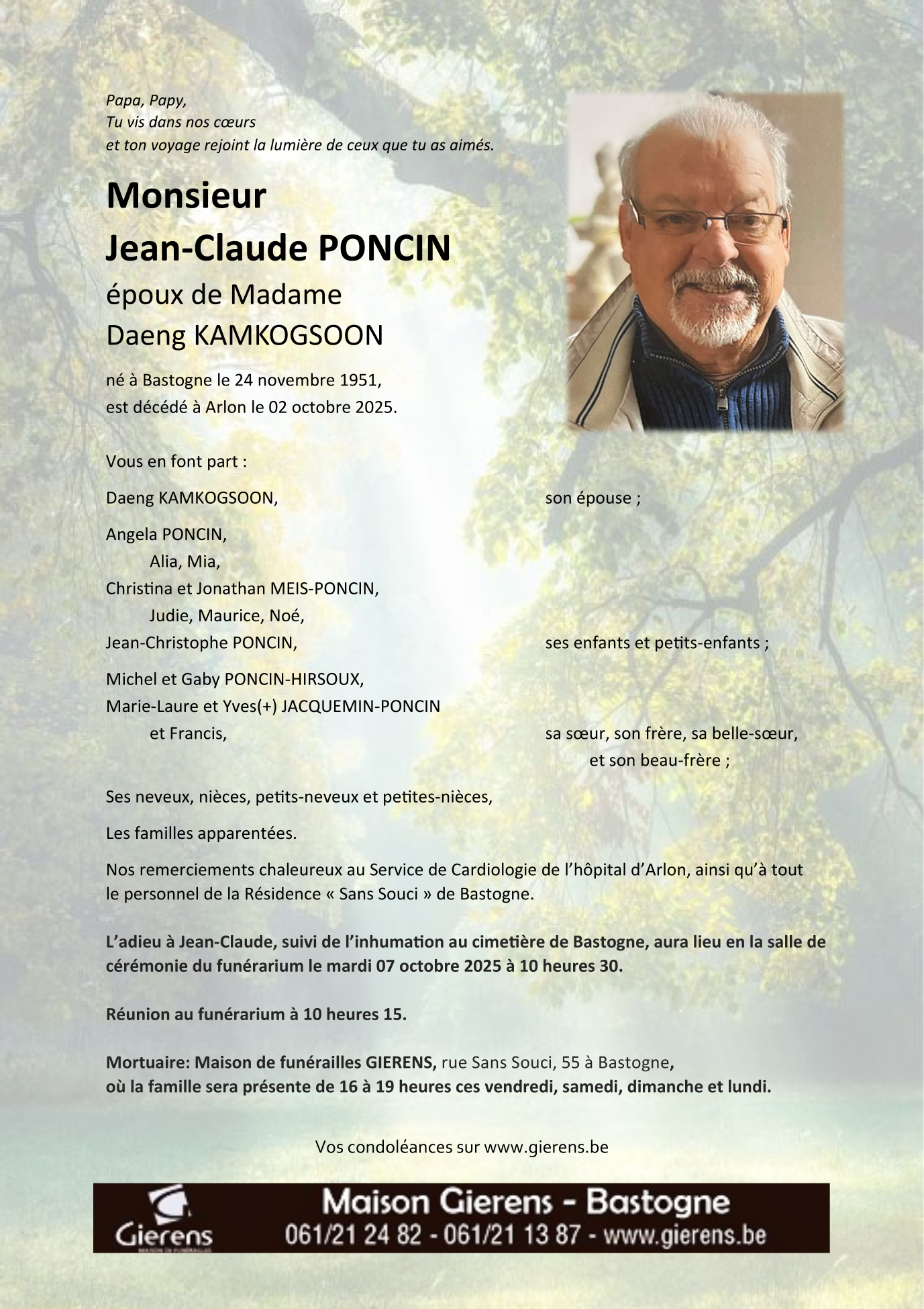 Décédé à Arlon (6700, Belgique) le jeudi 2 octobre 2025 à l'âge de 73 ans